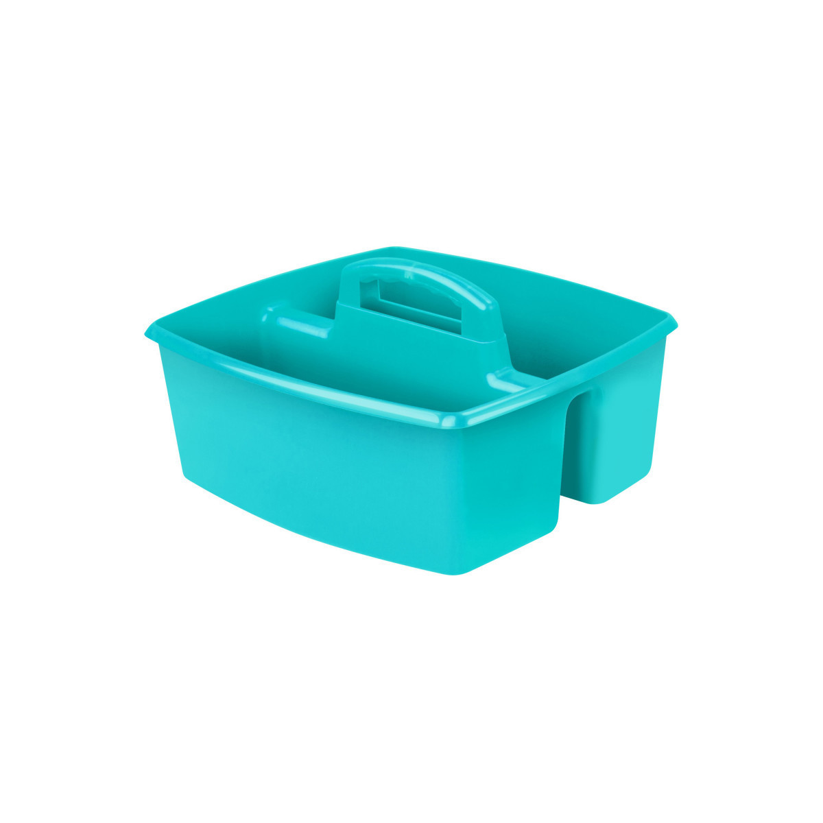 This large caddy has two large compartment to store art supplies, washing accessories, or anything you need to keep handy. It has a comfort grip handle and is available in several bright colors. Completely dishwasher safe.