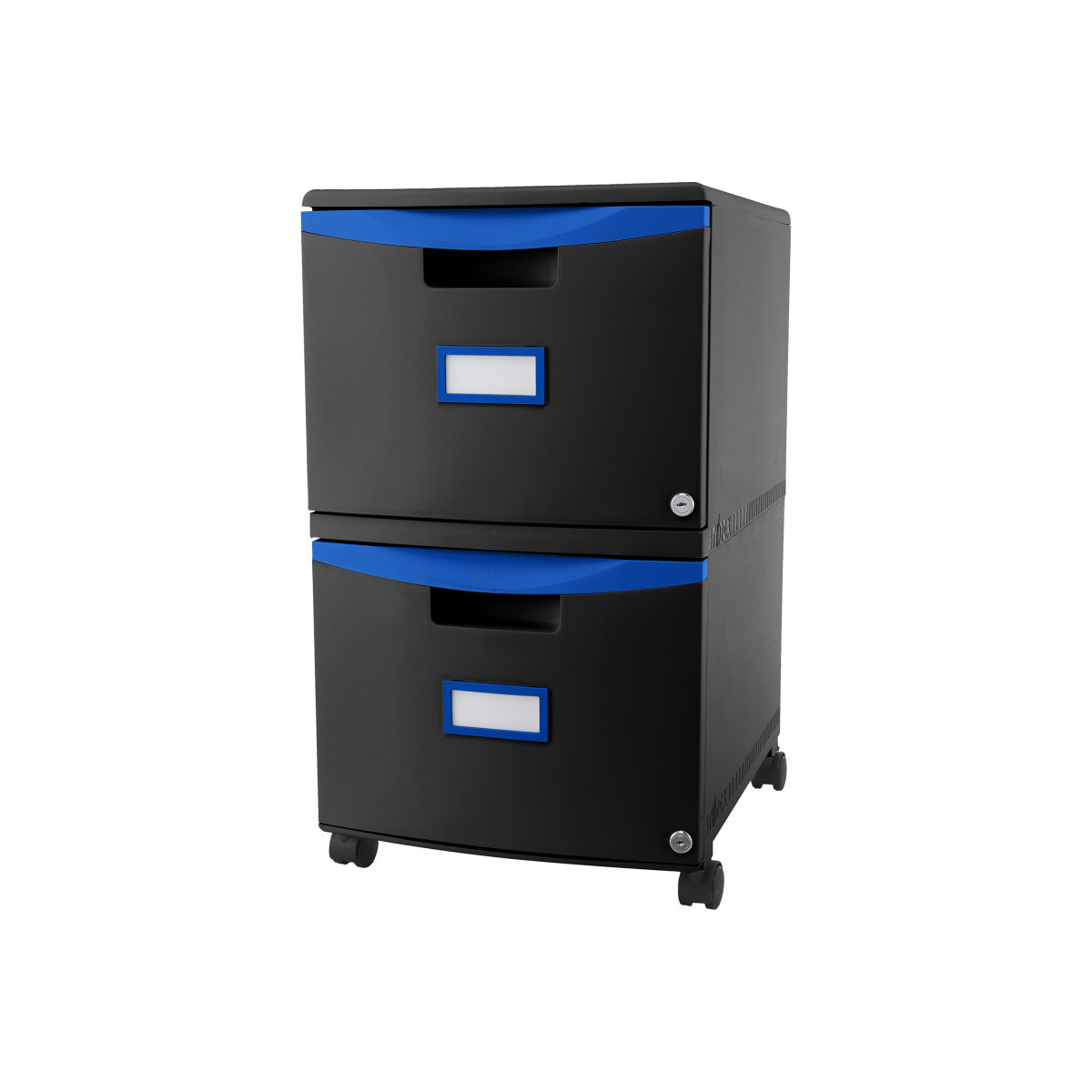 Storex 2 Drawer Mobile File Cabinet with Lock, Black & Blue