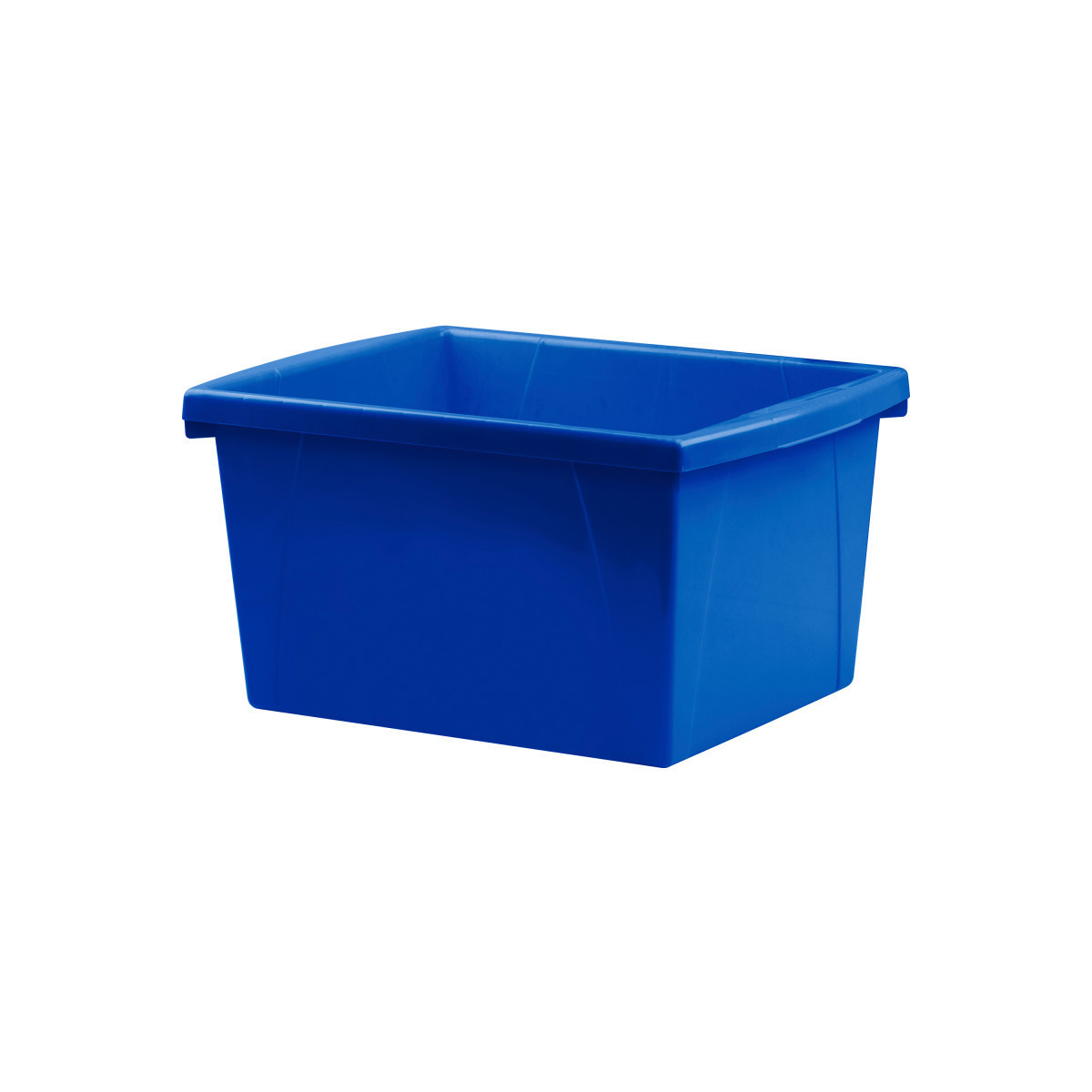 These storage bins are the ultimate companion for your bookshelf or cubby. The easy to grip handles are perfectly sized for big and small hands. They are made of impact resistant plastic and come in wonderfully bright colors. Use them to organize your room and store all your supplies. Measures 7.9"H x 11.3"W x 13.6"D.