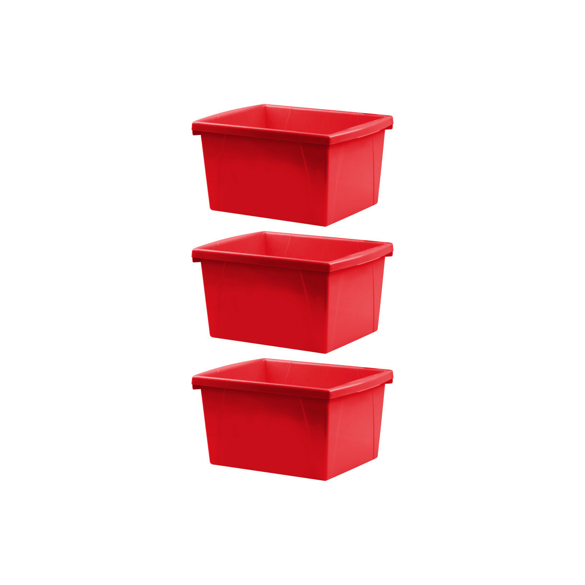 These storage bins are the ultimate companion for your bookshelf or cubby. The easy to grip handles are perfectly sized for big and small hands. They are made of impact resistant plastic and come in wonderfully bright colors. Use them to organize your room and store all your supplies. Measures 7.9"H x 11.3"W x 13.6"D. Sold as a pack of 3 storage bins.