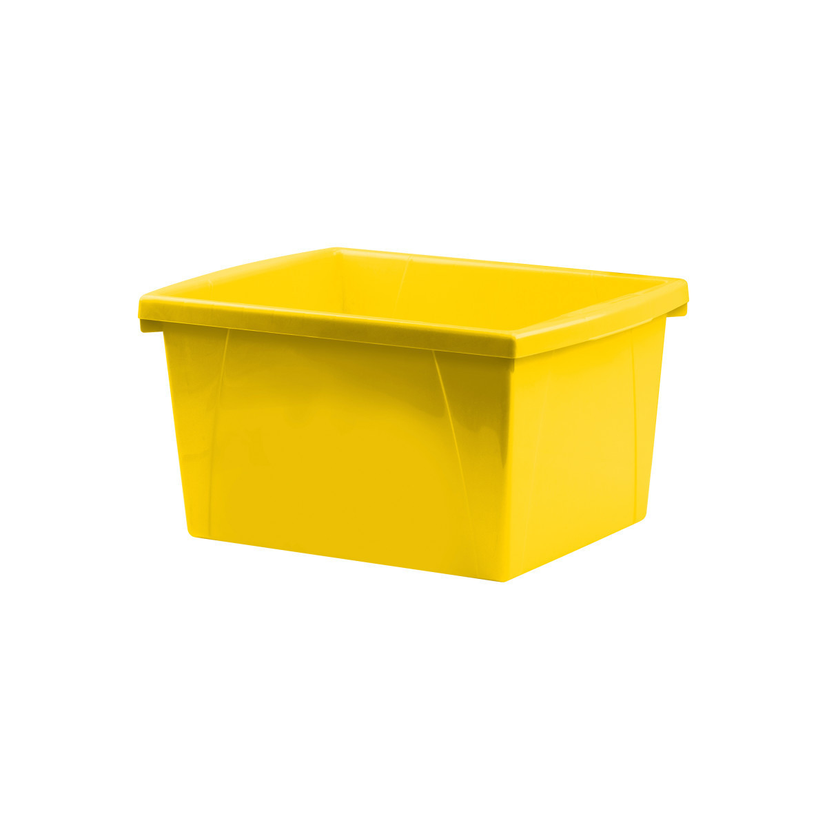 These storage bins are the ultimate companion for your bookshelf or cubby. The easy to grip handles are perfectly sized for big and small hands. They are made of impact resistant plastic and come in wonderfully bright colors. Use them to organize your room and store all your supplies. Measures 7.9"H x 11.3"W x 13.6"D.