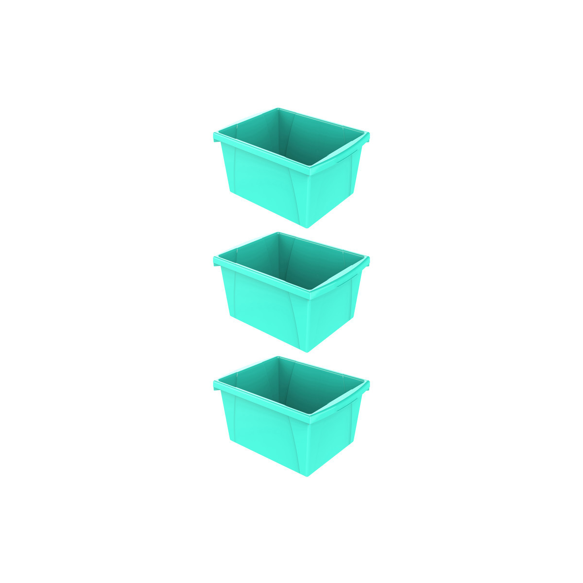 These storage bins are the ultimate companion for your bookshelf or cubby. The easy to grip handles are perfectly sized for big and small hands. They are made of impact resistant plastic and come in wonderfully bright colors. Use them to organize your room and store all your supplies. Measures 7.9"H x 11.3"W x 13.6"D. Sold as a pack of 3 storage bins.