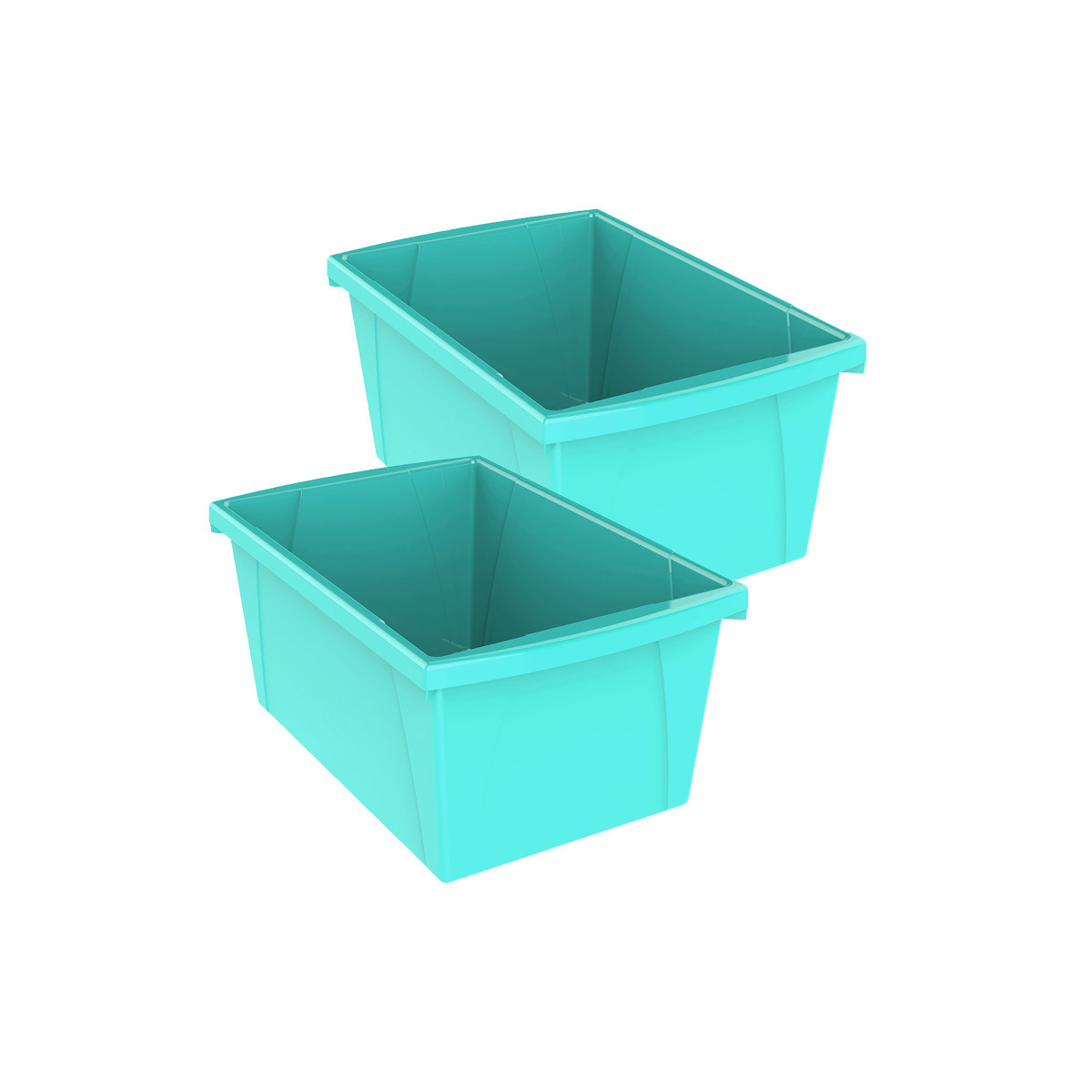 These storage bins are the ultimate companion for your bookshelf or cubby. The easy to grip handles are perfectly sized for big and small hands. They are made of impact resistant plastic and come in wonderfully bright colors. Use them to organize your room and store all your supplies. Measures 16.75"L x 11.87"W x 8.28"H. Sold as a pack of 2 storage bins.