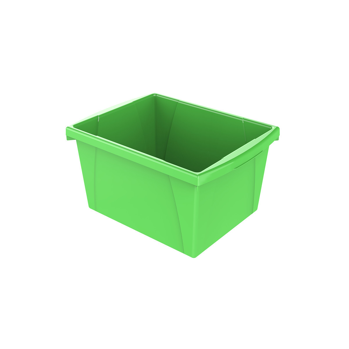 These storage bins are the ultimate companion for your bookshelf or cubby. The easy to grip handles are perfectly sized for big and small hands. They are made of impact resistant plastic and come in wonderfully bright colors. Use them to organize your room and store all your supplies. Measures 13.625"L x 11.25"W x 7.875"H.