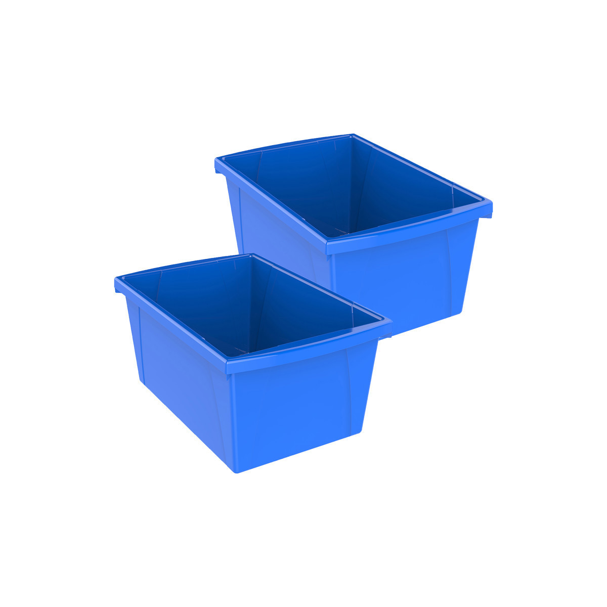 These storage bins are the ultimate companion for your bookshelf or cubby. The easy to grip handles are perfectly sized for big and small hands. They are made of impact resistant plastic and come in wonderfully bright colors. Use them to organize your room and store all your supplies. Measures 16.75"L x 11.87"W x 8.28"H. Sold as a pack of 2 storage bins.