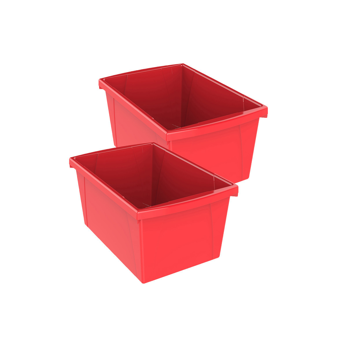These storage bins are the ultimate companion for your bookshelf or cubby. The easy to grip handles are perfectly sized for big and small hands. They are made of impact resistant plastic and come in wonderfully bright colors. Use them to organize your room and store all your supplies. Measures 16.75"L x 11.87"W x 8.28"H. Sold as a pack of 2 storage bins.