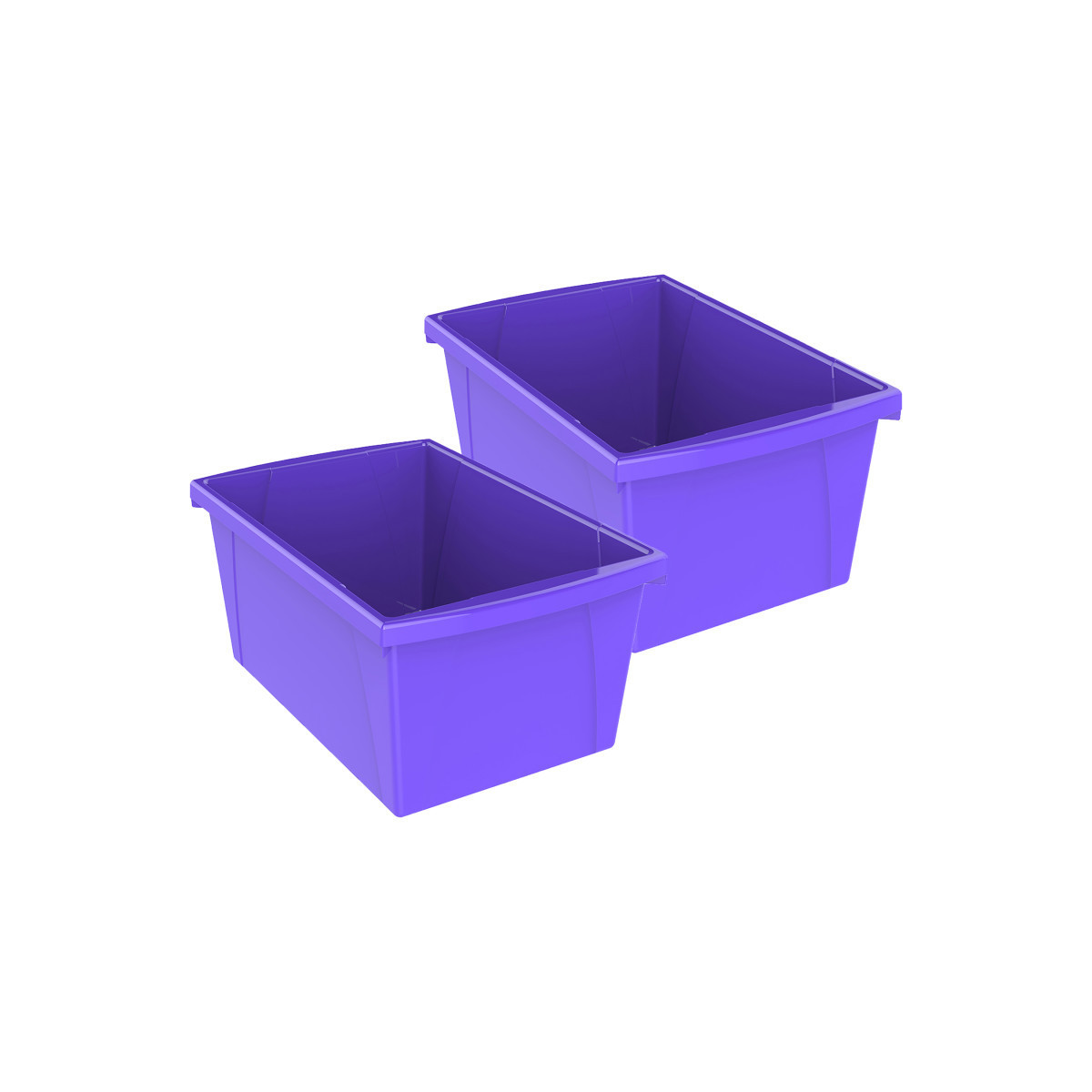 These storage bins are the ultimate companion for your bookshelf or cubby. The easy to grip handles are perfectly sized for big and small hands. They are made of impact resistant plastic and come in wonderfully bright colors. Use them to organize your room and store all your supplies. Measures 16.75"L x 11.87"W x 8.28"H. Sold as a pack of 2 storage bins.