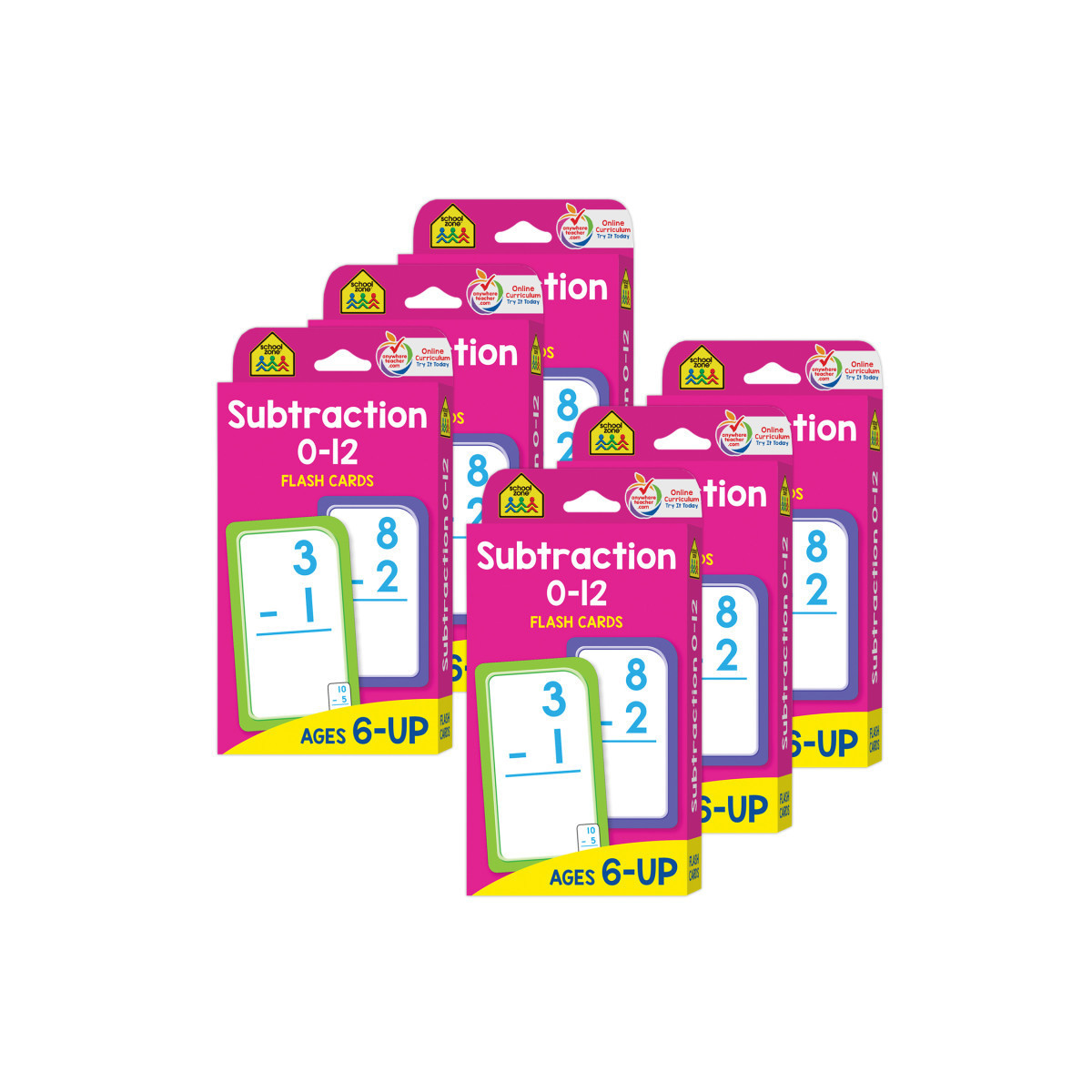 Subtraction flash cards are pretty cool, because they help equip your child for school! Make subtraction synonymous with fun! Don't wait for Parent/Teacher Conferences to find out that your child needs practice with his or her math facts. Buy them today and watch your child become a subtraction superstar! Each pack includes 53 double-sided cards featuring problems, 2 Parent Cards with tips for working with your child and directions, and 1 Answer Card for simple reference. Sold as 6 identical packs of flash cards.