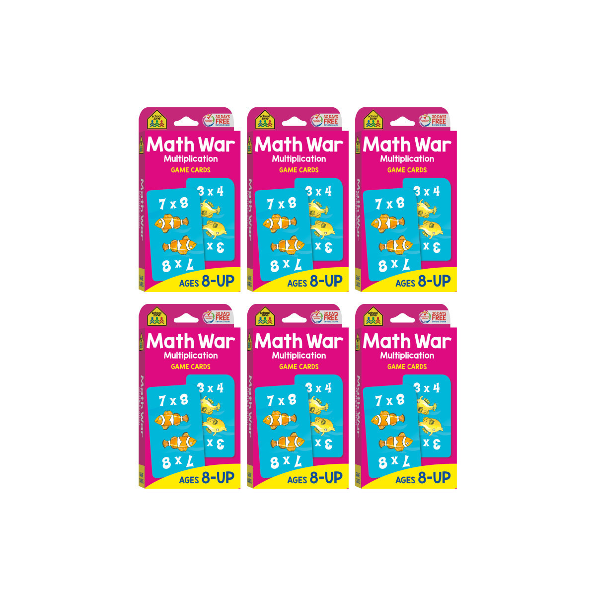 Does your child need help with multiplication but dread learning it? Then turn it into a game! The multiplication edition of our Math War Game Cards is a fun and competitive way to help third, fourth and fifth graders practice their basic multiplication facts. Your child and a friend can play together, each flipping over cards and solving them. The player with the highest card value wins both cards. After a few rounds of this game, your child will be ready for those flash cards and timed tests at school! Includes 54 Game Cards, 1 Answer Card, and 1 Parent Card with rules and game ideas. Cards measure 3.375" x 6.375". For ages 8 and up. Sold as 6 game sets.