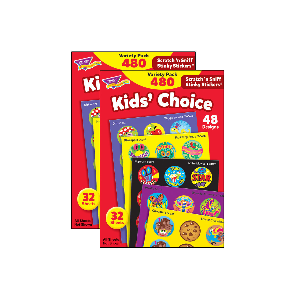 - Each pack includes 48 designs, 480 stickers, 15 scents. Sold as 2 packs for a total of 96 stickers.