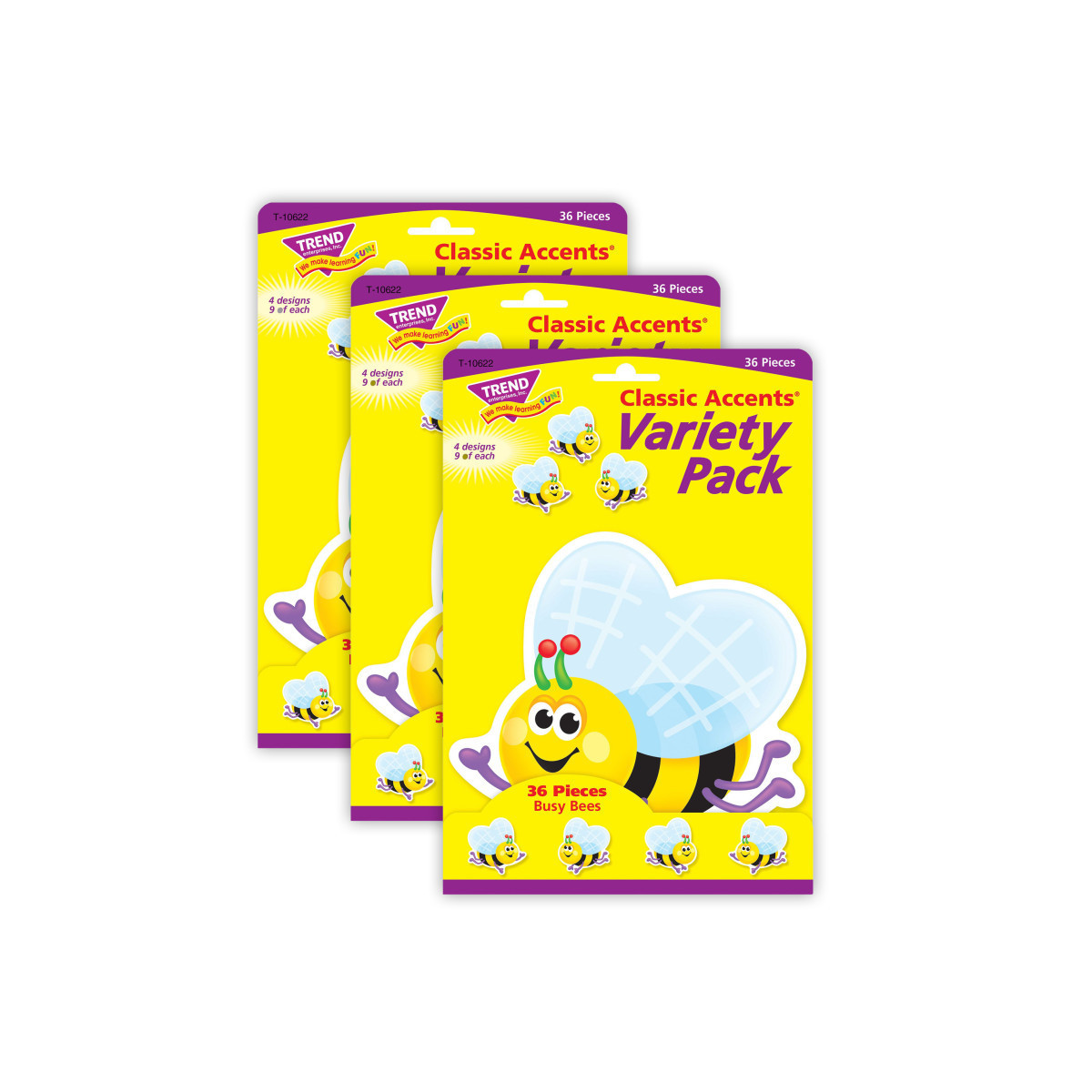 So many ways to inspire, motivate & create! Playful bee accents brighten displays, word walls, centers, lockers, and announcements. Use for patterning & sequencing, flash cards, student grouping, job charts, crafts, and mobiles. Handy, versatile & fun! Durable, reusable paper. Measures 6 inches tall. Made in USA. Each pack includes 36 accents. Sold as 3 packs for a total of 108 accents.