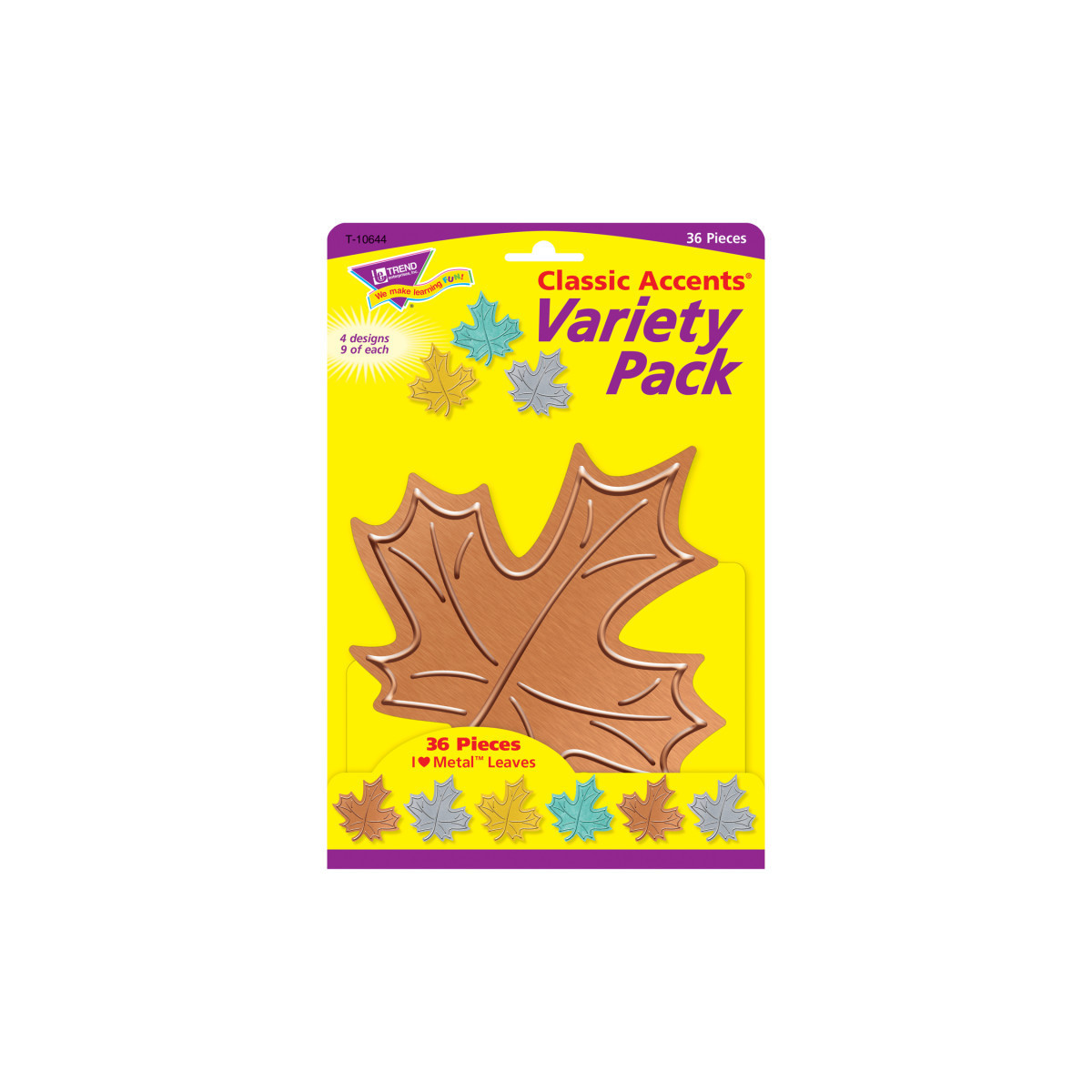 - Maple leaf cut-outs in 4 colors accent any décor, let you group information and assignments.