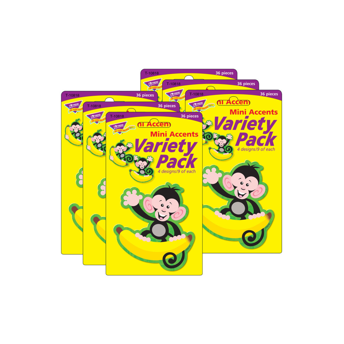 Bring on the fun and inspire smiley faces! Ideal for marking calendar days, sorting, patterning and graphing activities, labeling, accenting displays, creating game pieces and tags, plus inspiring craft projects. Precut and ready to use. Durable and reusable. 4 designs, 36 pieces per pack, 3" tall. Sold as 6 packs for a total of 216. Coordinates with Monkey Mischief Collection.