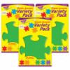 Colorful puzzle pieces are precut and ready to use in blue, orange, purple, green, red, and yellow.