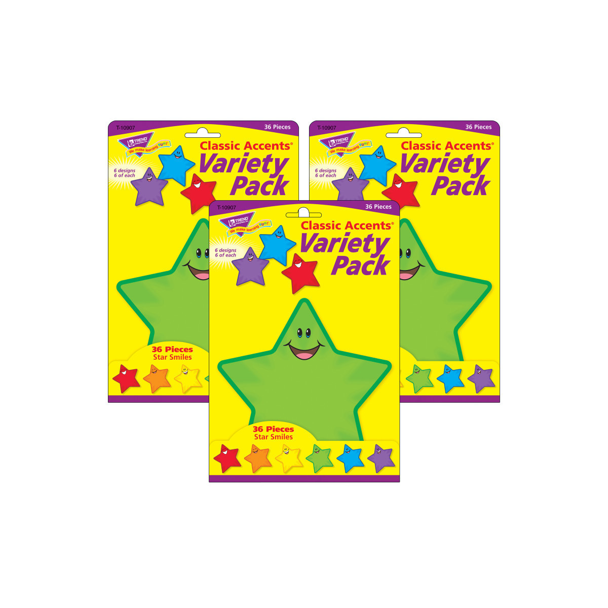 Vibrant designs energize spaces and delight and engage viewers. Label containers, lockers and centers, accent displays, decorate walls and posters, showcase student work, inspire creative writing, and reward accomplishments. Endless possibilities! Precut and ready to use in red, yellow, blue, green, orange, and purple. Durable and reusable. 6 designs, 6 of each. 36 pieces, 5.5" - 6" tall. Sold as a set of 3 packs, 108 pieces total.