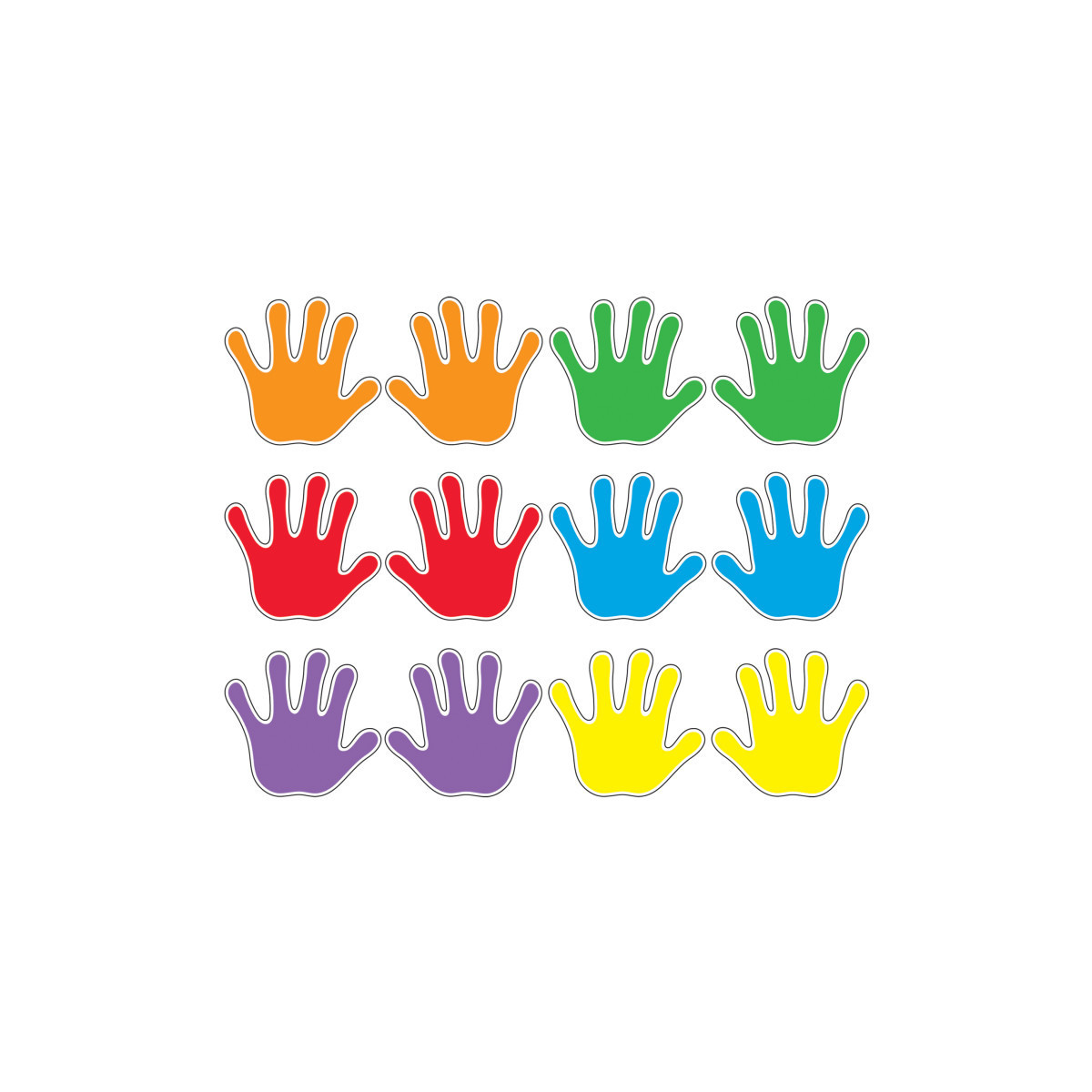 - Left- and right-handprint pairs are ready to use in orange, purple, red, blue, yellow, and green.