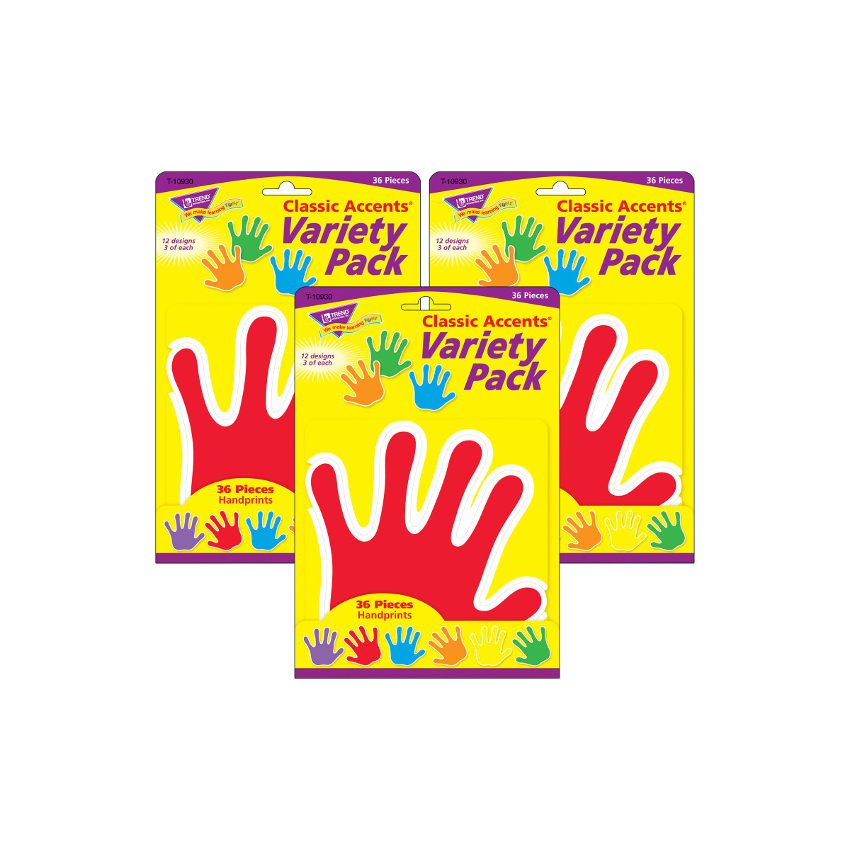 Vibrant designs energize spaces and delight and engage viewers. Label containers, lockers and centers, accent displays, decorate walls and posters, showcase student work, inspire creative writing, and reward accomplishments. Endless possibilities! Precut and ready to use in 6 color pairs: green, blue, red, yellow, orange, and purple. Durable and reusable. 6 designs, 6 of each. 36 pieces, 5.5" - 6" tall. Sold as a set of 3 packs, 108 pieces total.
