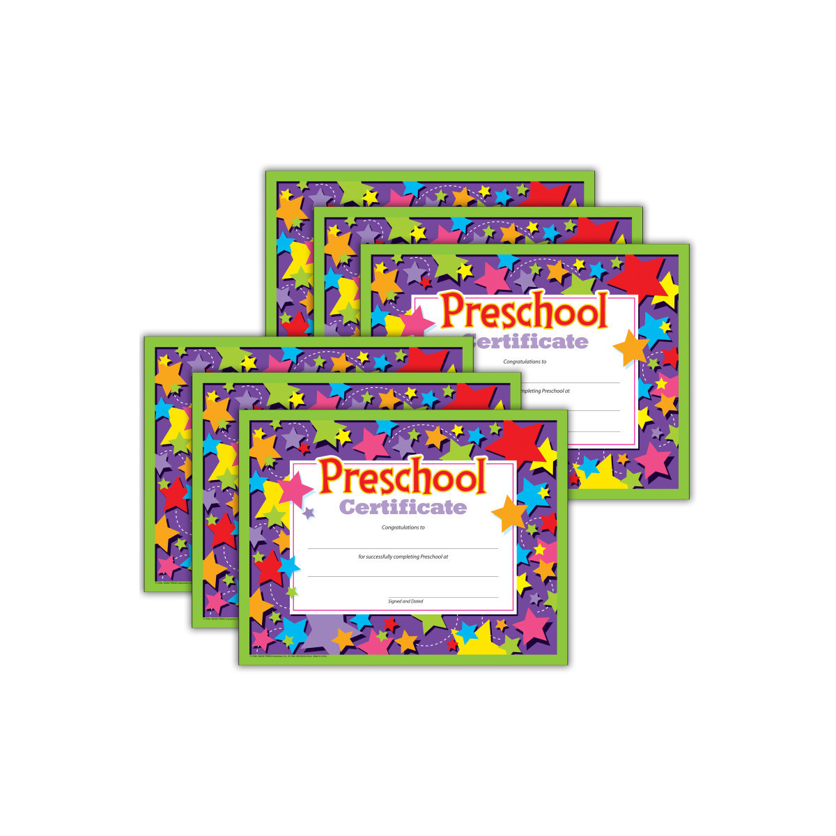 Celebrate early learning! Recognize children's first school experiences and give them a feeling of success. The charming designs and messages celebrate participation and completion. Printer-compatible. Ready to frame. 30 per pack, 8.5" x 11". Sold as 6 packs, 180 certificates total.