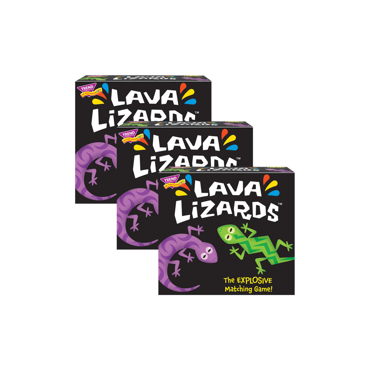 Get ready for a game full of explosive finishes! Lava lizards spend their days lounging on hot lava rocks, unknowingly surrounded by active volcanoes that may explode any second...Use lizard luck to outmatch opponents and outrun the blast...fast! Be careful not to get caught lounging. Uncover all six timer cards and you're in HOT lava! Action Cards add extra challenge when they BLAST, BOOM, and cover progress in Smoke & Ash. Luck-of-the-draw gives all ages chances to win. Challenge friends and family or work together to test your lizard luck. Five games in one for tons of FUN: Build a lava dome, find pairs, and link cards with lizard precision. Triangle cards match by lava colors, lizard colors, and lizard shapes for endless rounds of fun.