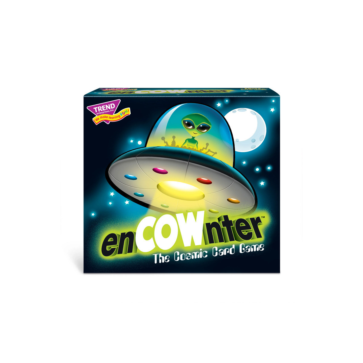 Greetings, fellow aliens. It's time for some chance enCOWnters! Leave your opponents in the cosmic dust by quickly capturing earthly things to complete a mission first. Avoid Martian Mayhem and carefully choose which cards to keep and which to send into orbit. Every turn leaves a chance for drawing mission-changing cards that cause cosmic chaos! Unique, three-sided game cards fit together to fill light beams full of unsuspecting earthly things - their expressions bring humor to adults and kids alike! Compact box and minimal play area required makes this card game perfect for grab-and-go fun. Bring entertainment during travel, in waiting rooms, at sleepovers, to grandparents' houses and camps. Minimal room required: Play area fits on RV and coffee tables, airplane seat trays, and more. 63 game cards, plus full-color instructions. 2 to 4 players, ages 6 to adult. 15-minute game play means there's always time for one more enCOWnter! Made in USA.