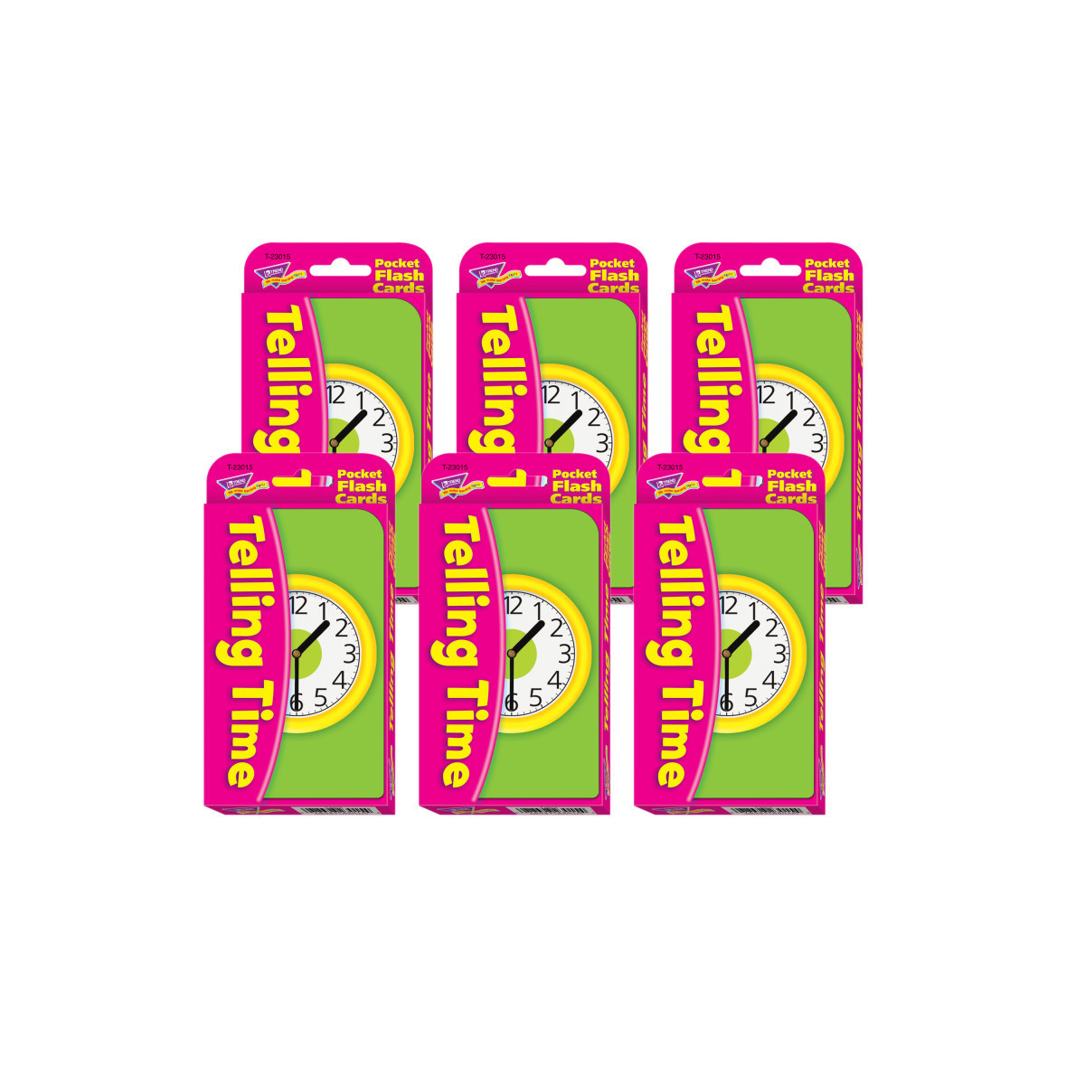Flashy by design! Build student confidence and skills using fun-filled flash cards. This pack, complete with activities, teaches time on the hour, half hour, quarter hour, and 5-minute increments. Analog clocks on front. Digital and word equivalents on back. Watch students enjoy learning and build skills on their own or with friends... at school, home, or on the go! Durable, no-see-through cards with quick-sorting, rounded corners. 56 two-sided cards per pack, 3.125" x 5.25". For ages 6 and up. Sold as 6 identical packs of flash cards.