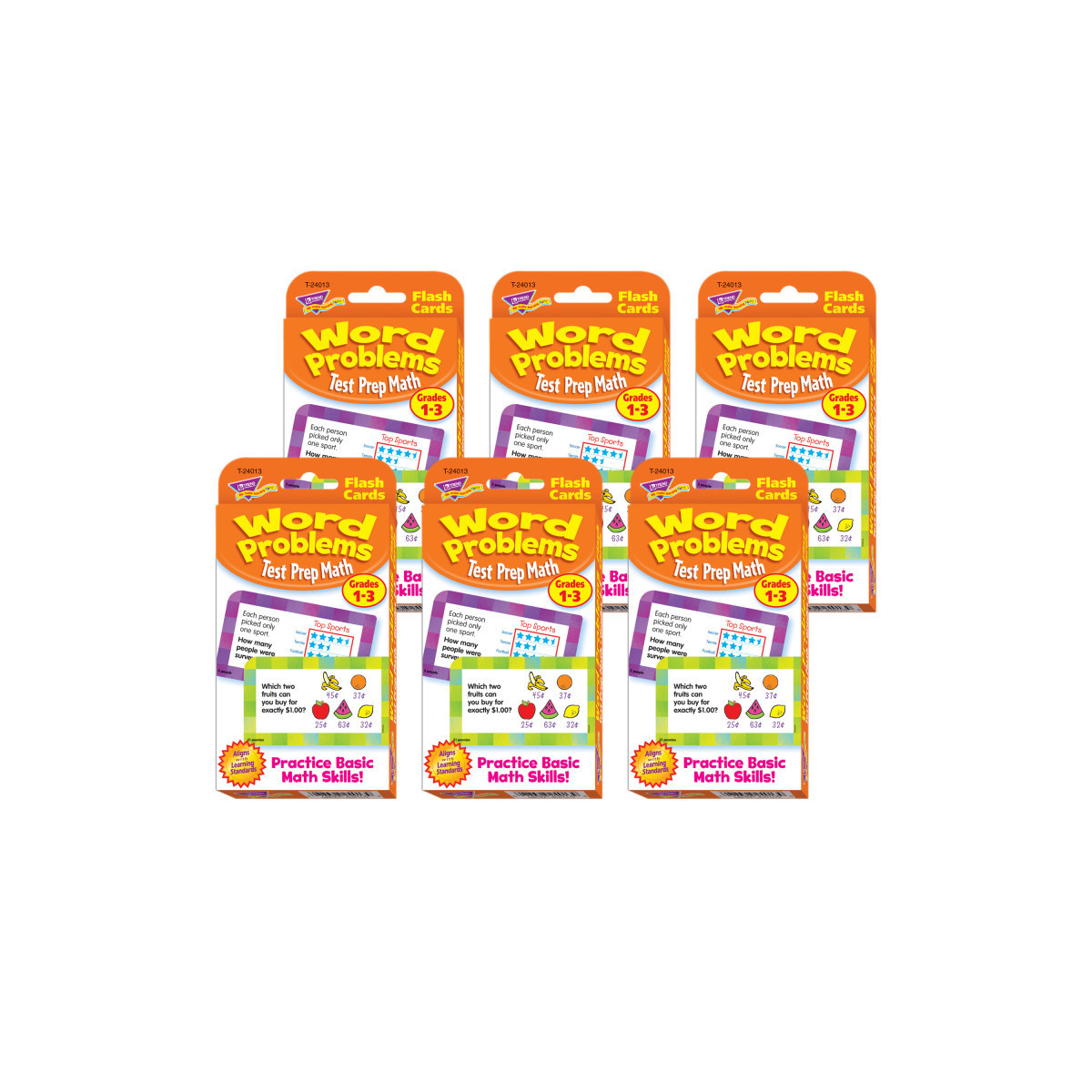 Spark laughter and learning with questions about charts, graphs, measurement, money, time, algebraic thinking, and other math subjects. Versatile cards adapt to growing abilities for endless rounds of learning fun and mastery. Great for school, home, and travel. Self-checking, answers on backs. Durable, no-see-through cards. Quick-sorting, rounded corners. 56 two-sided cards per pack, 3.125" x 5.25". For grades 1-3. Sold as 6 identical packs of cards.