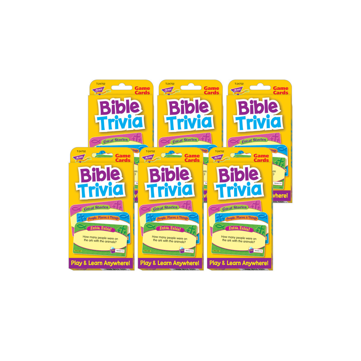 Game play helps children learn important Bible stories and fun facts. Test your knowledge with four categories of Bible trivia. Two levels of play on each card. A unique, engaging learning supplement for Christian classrooms, activity centers, home, and travel. Activities included. For ages 6 and up. Each pack of flash cards includes 56 two-sided cards, 3.125" x 5.25". Sold as 6 identical packs.
