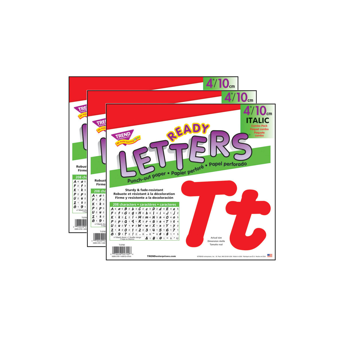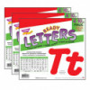 Lively letters, limitless possibilities! Convenient, reusable, and easy to use. Great for student work displays, bulletin boards, signs, banners, news boards, learning activities, labeling, and much more! Fade-resistant colors coordinate with TREND products. Durable. Each pack includes 56 uppercase letters, 83 lowercase letters, 13 numerals 0-9, 27 punctuation marks, 14 Spanish accent marks, and 1 blank sheet. Sold as 3 packs.