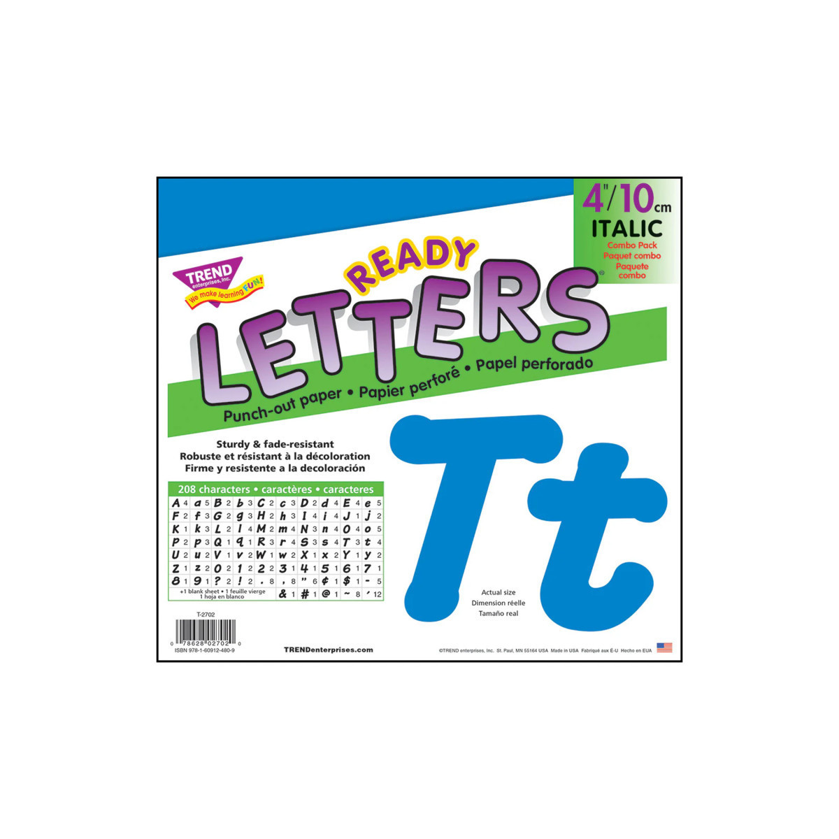 Lively letters, limitless possibilities! Convenient, reusable, and easy to use. Great for student work displays, bulletin boards, signs, banners, news boards, learning activities, labeling, and much more! Fade-resistant colors coordinate with TREND products. Durable. Includes 56 uppercase letters, 83 lowercase letters, 13 numerals 0-9, 27 punctuation marks, 14 Spanish accent marks, and 1 blank sheet.