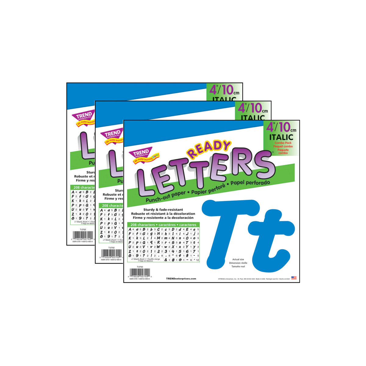 Lively letters, limitless possibilities! Convenient, reusable, and easy to use. Great for student work displays, bulletin boards, signs, banners, news boards, learning activities, labeling, and much more! Fade-resistant colors coordinate with TREND products. Durable. Each pack includes 56 uppercase letters, 83 lowercase letters, 13 numerals 0-9, 27 punctuation marks, 14 Spanish accent marks, and 1 blank sheet. Sold as 3 packs.