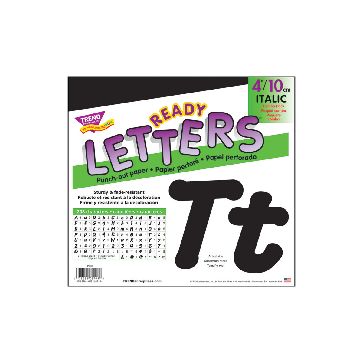 Lively letters, limitless possibilities! Convenient, reusable, and easy to use. Great for student work displays, bulletin boards, signs, banners, news boards, learning activities, labeling, and much more! Fade-resistant colors coordinate with TREND products. Durable. Includes 56 uppercase letters, 83 lowercase letters, 13 numerals 0-9, 27 punctuation marks, 14 Spanish accent marks, and 1 blank sheet.
