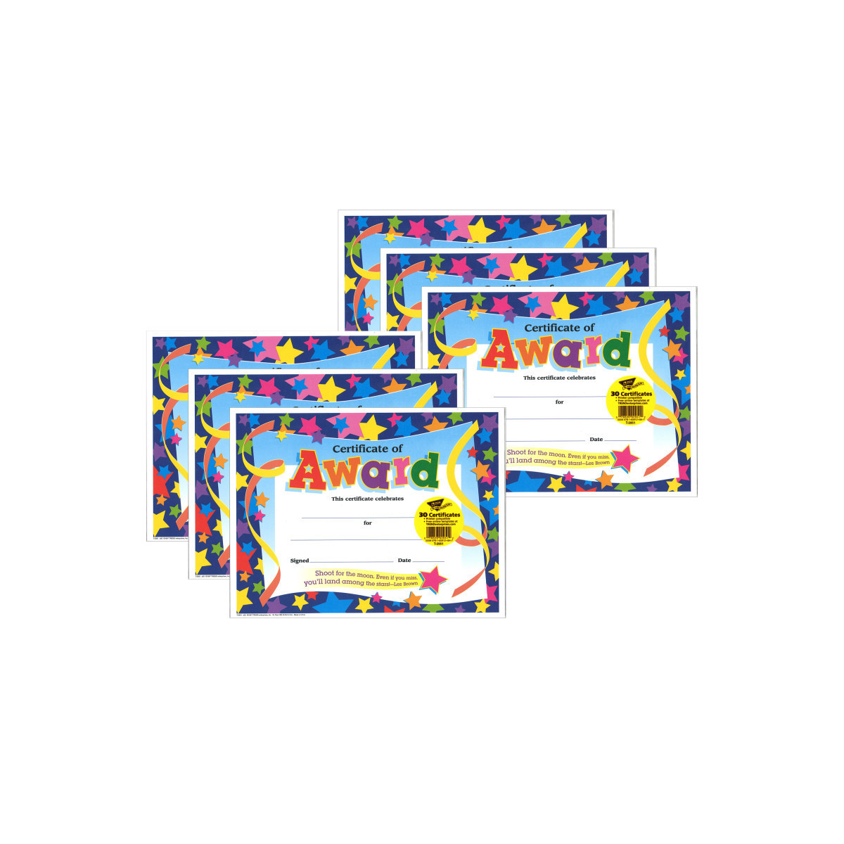 Mark achievement throughout the year. Take every opportunity to honor older students as well as adult volunteers and staff. Our certificates offer dynamic designs and positive messages. Printer-compatible and ready to frame. 30 per pack, 8 .5" x 11". Sold as 6 packs for a total of 180.