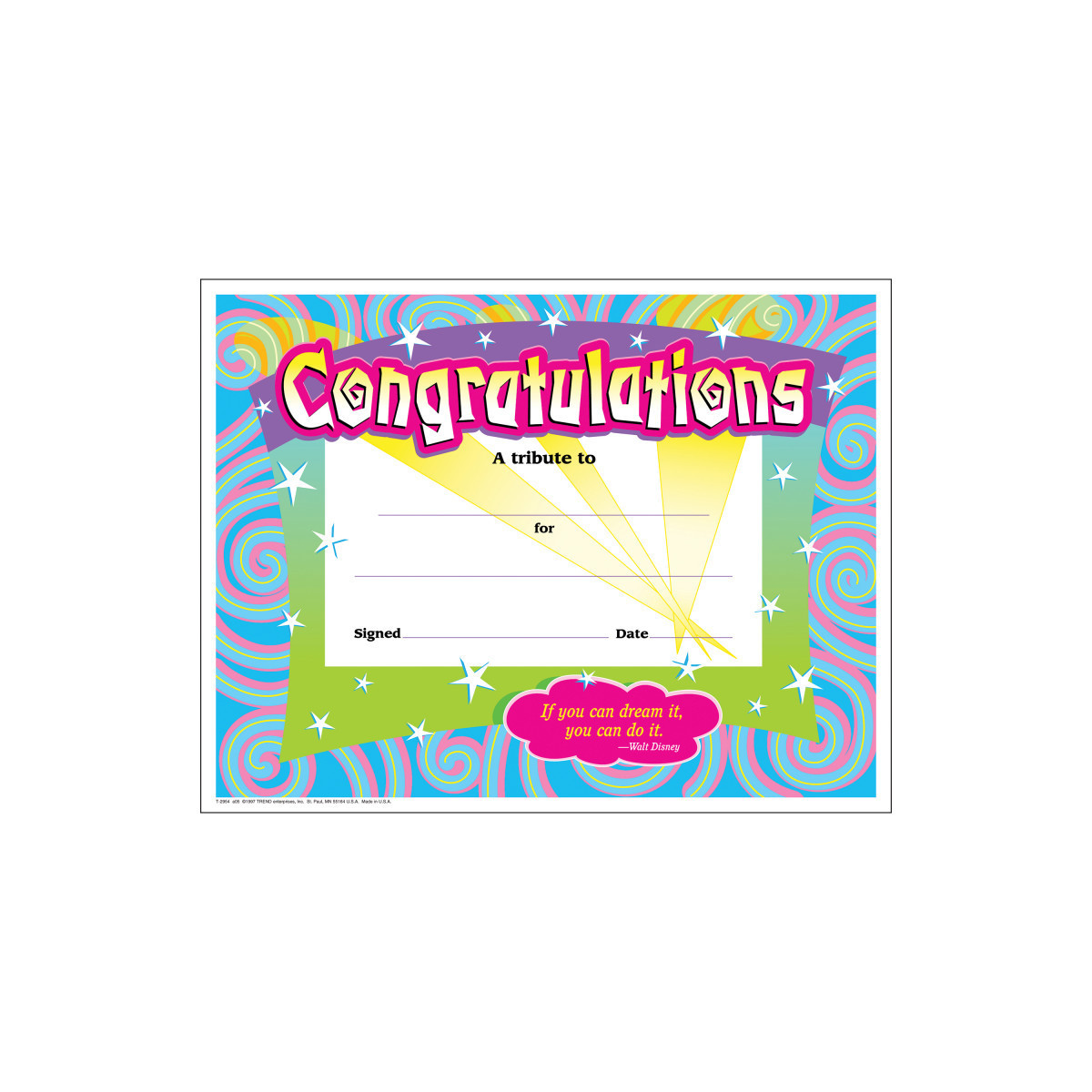 TREND Congratulations/Swirls Colorful Classics Cert's., 30 ct