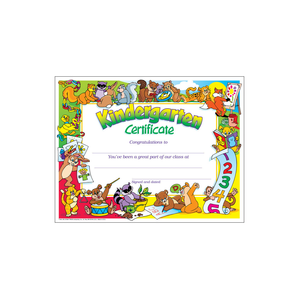 • Artwork gives ample writing space for a child's name, congratulatory message, and signature.