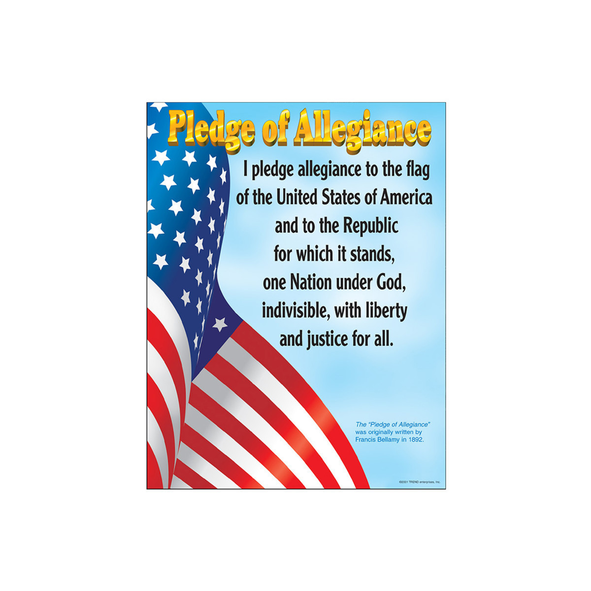 The Pledge of Allegiance illustrated with an American flag. Back of chart features reproducible activities, subject information, and helpful tips. 17" x 22" classroom size.