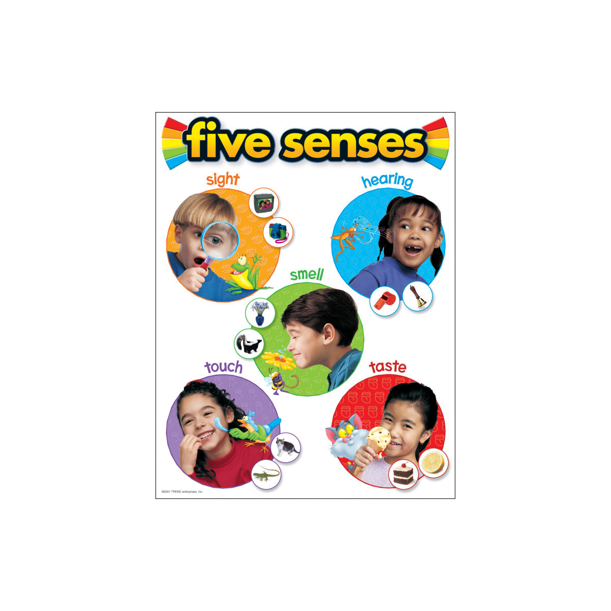 Photos show children participating in activities to demonstrate the five senses. Includes objects that relate to a sense (i.e., a kitten for touch, cake for taste). Durable. Extra Value: Reproducibles on back. Measures 17" x 22".