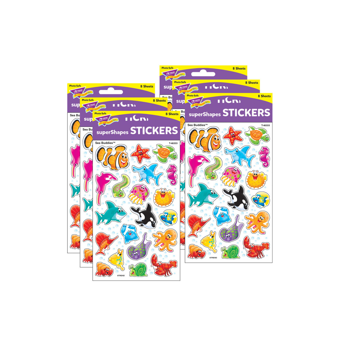 Kids love these stickers! Bright colors and amazing designs to motivate, collect, trade, and celebrate success. So many uses! Acid free, nontoxic, and safe for use on photos. Coordinates with Sea Buddies Collection. Each pack contains 160 stickers in 20 designs. Sold as 6 packs for a total of 960 stickers.
