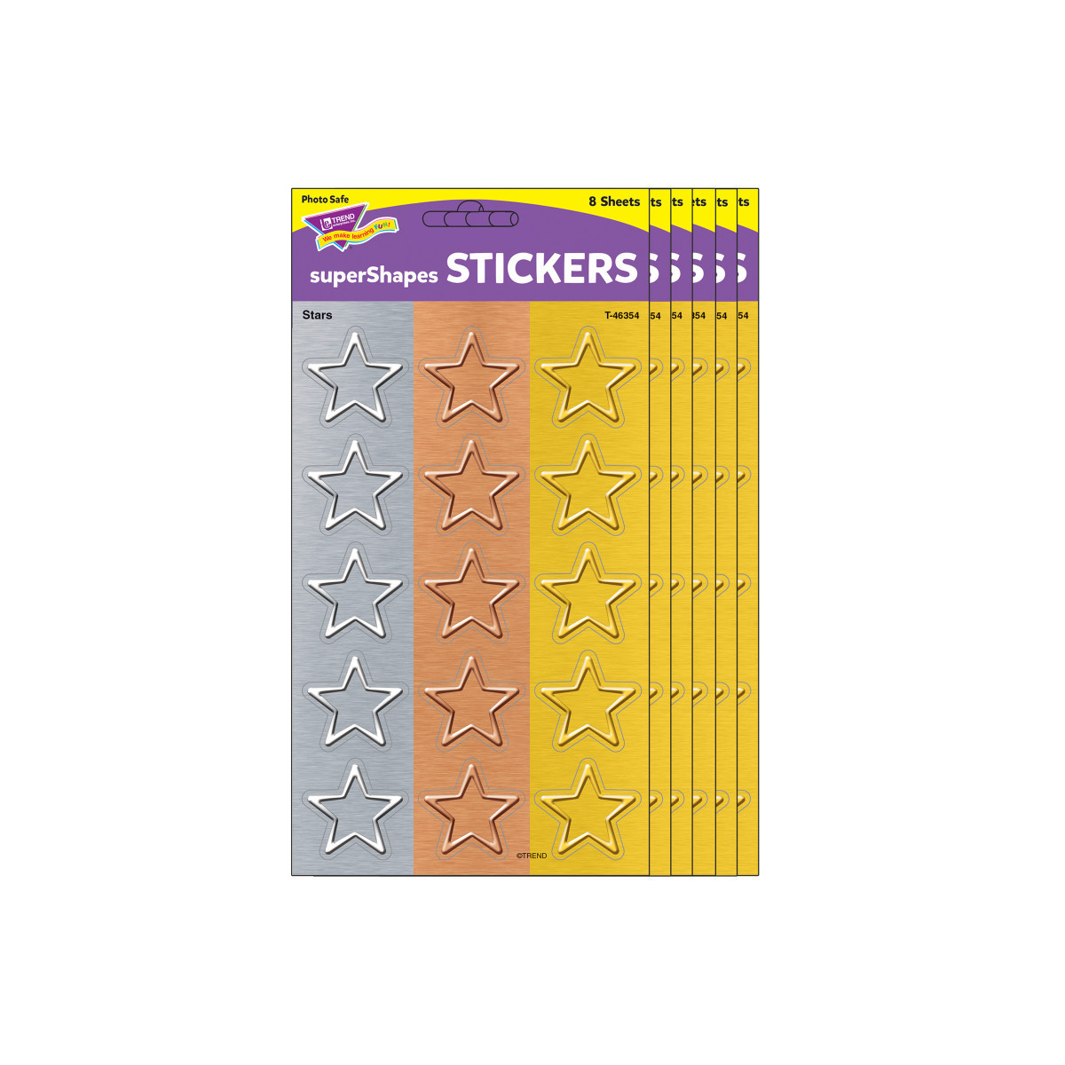 Kids love these stickers! Bright colors and amazing designs to motivate, collect, trade, and celebrate success. So many uses! Acid free, nontoxic, and safe for use on photos. Each pack includes 120 stickers (3 colors of stars, 8 sheets). Sold as 6 packs for a total of 720 stickers.