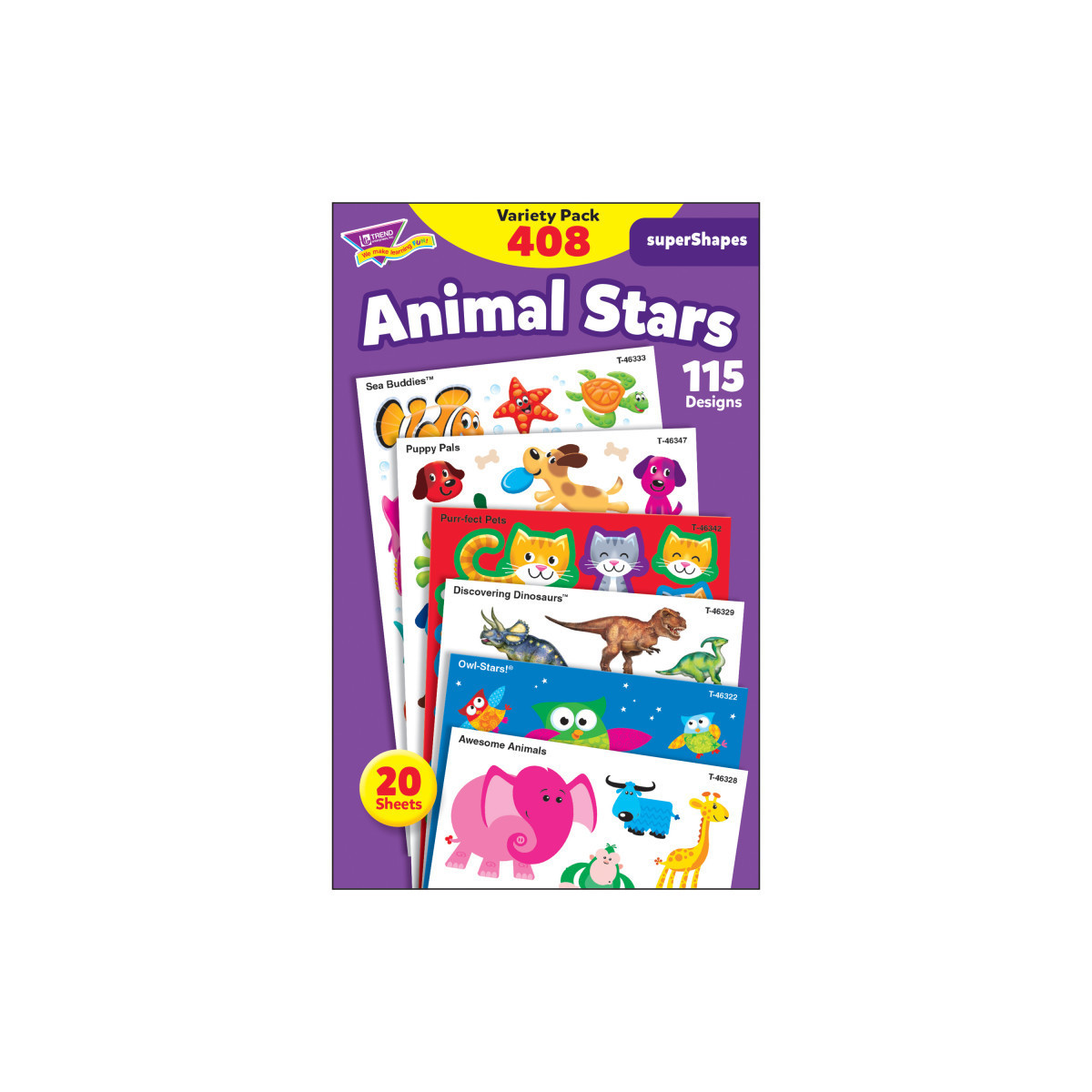 Handy favorites! superShapes Stickers provide extra value in every pack. Acid free, nontoxic, and photo safe. Each pack contains 20 sheets, 408 stickers, 115 designs.