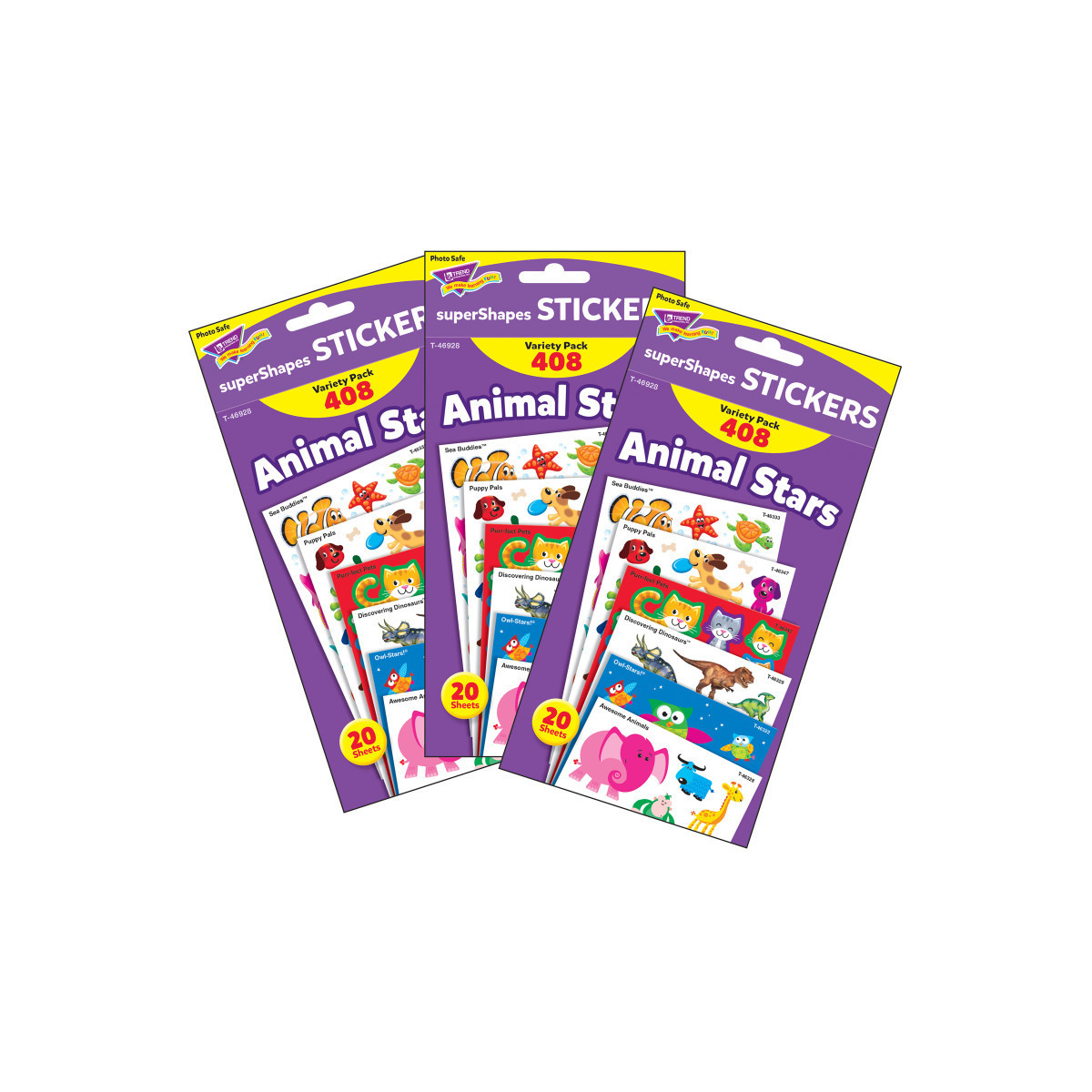 Handy favorites! superShapes Stickers provide extra value in every pack. Acid free, nontoxic, and photo safe. Each pack contains 20 sheets, 408 stickers, 115 designs. Sold as 3 packs for a total of 1224 stickers.