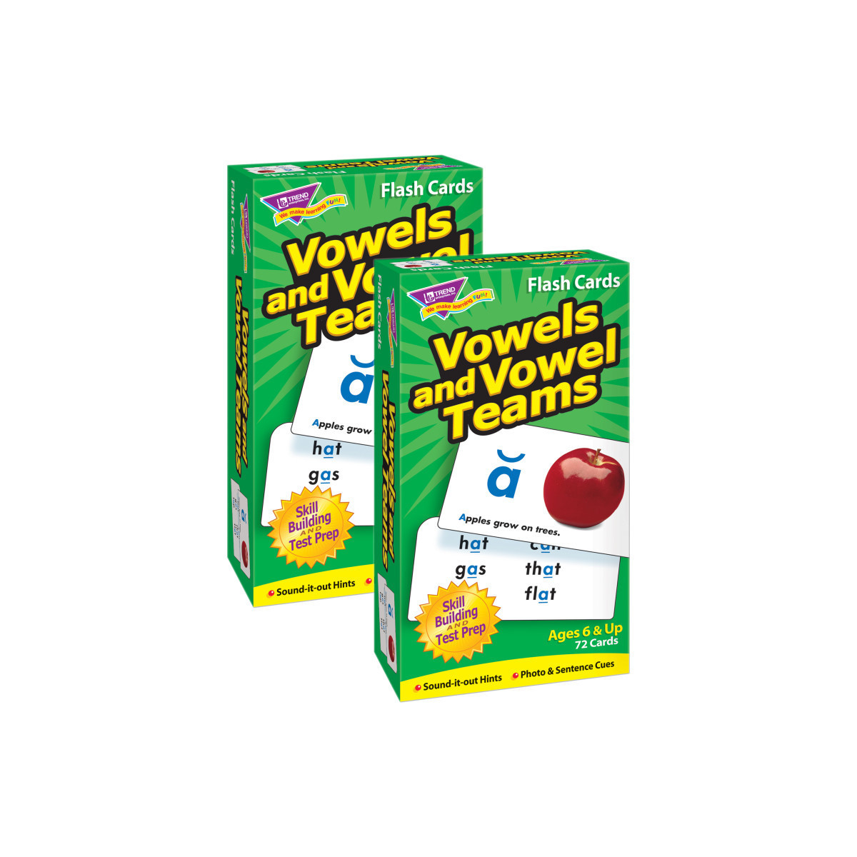Content-rich language arts cards do their job, teaching students new skills in a fun way. This educational aid uses photos, words, sound cues, and sentences to teach vowels and build reading skills. From Dolch and Fry Instant Words lists. Sturdy cards and storage box. Students will delight in mastering new skills. No-see-through cards with quick-sorting, rounded corners. 72 cards per pack, 3" x 6". For ages 6 and up. Sold as 2 identical packs.