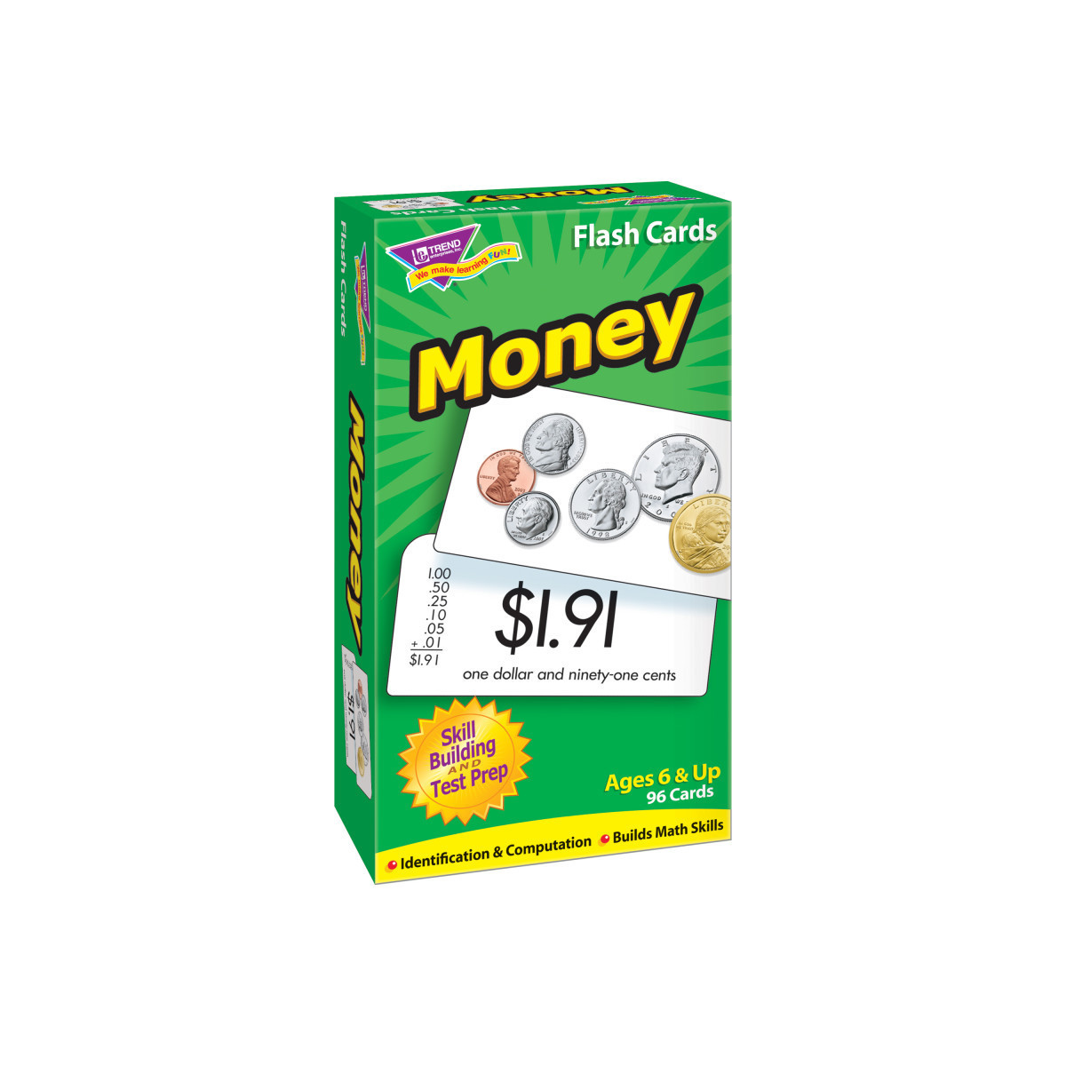 Content-rich money cards do their job, teaching students new skills in a fun way. This educational aid teaches money using U.S. coins and bills from 1¢ to $20.00, numbers, and words. Photos for real-life learning. Self-checking, answers on card backs. Sturdy cards and storage box. Students will delight in mastering new skills. No-see-through cards with quick-sorting, rounded corners. 96 cards, 3" x 6".