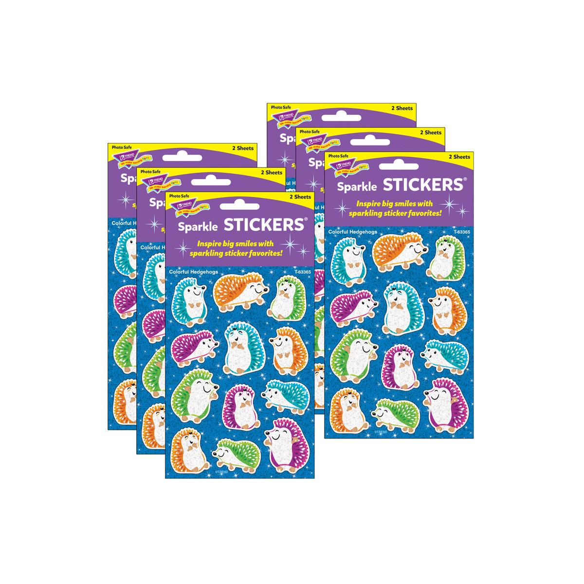 Inspire big smiles with sparkling sticker favorites! Motivate and reward progress, decorate folders, journals, scrapbooks ... and any project. Fun assortment in every pack. Coordinates with Color Harmony™ Collection. Each pack includes 24 stickers in 12 designs. Sold as 6 packs for a total of 144 stickers.