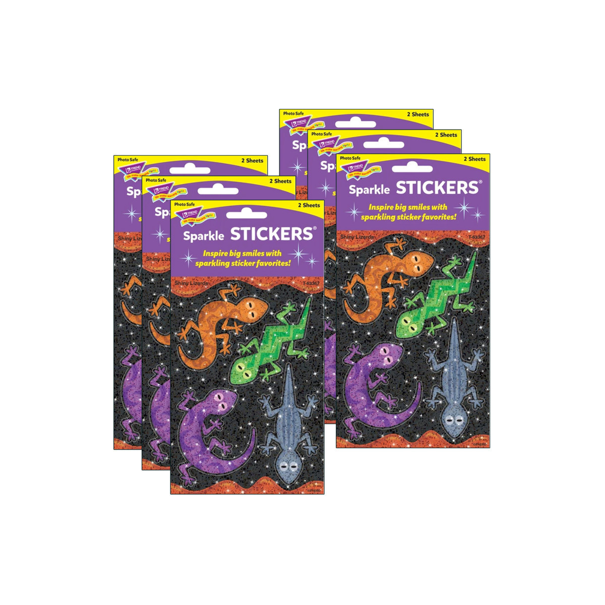 Big lizard stickers bring BIG shine anywhere you stick them! Motivate and reward progress, and use to decorate folders, journals, scrapbooks, and planners. The sticker designs coordinate with Lava Lizards™ Three Corner™ Card Game so they are perfect for game night prizes and they make sparkling additions to party favor bags too. Each pack includes 8 stickers in 4 designs. Sold as 6 packs for a total of 48 stickers.
