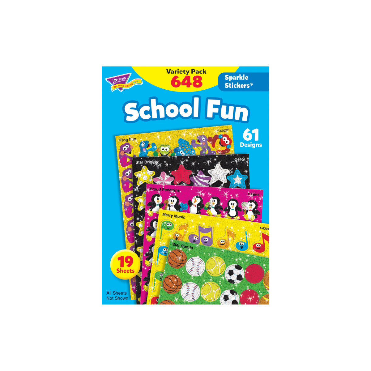 Little sparklers are a big hit with kids! They're just the right size to put on homework and reward good behavior. This variety pack includes Apple Dazzlers, Twinkling Stars, Star Brights, Sunny Smiles, Proud Penguins, Merry Music, Star Sports, Brilliant Birthday, and Frog Fun. Stickers are acid free, nontoxic, and safe for use on photos. 61 designs, 648 stickers.