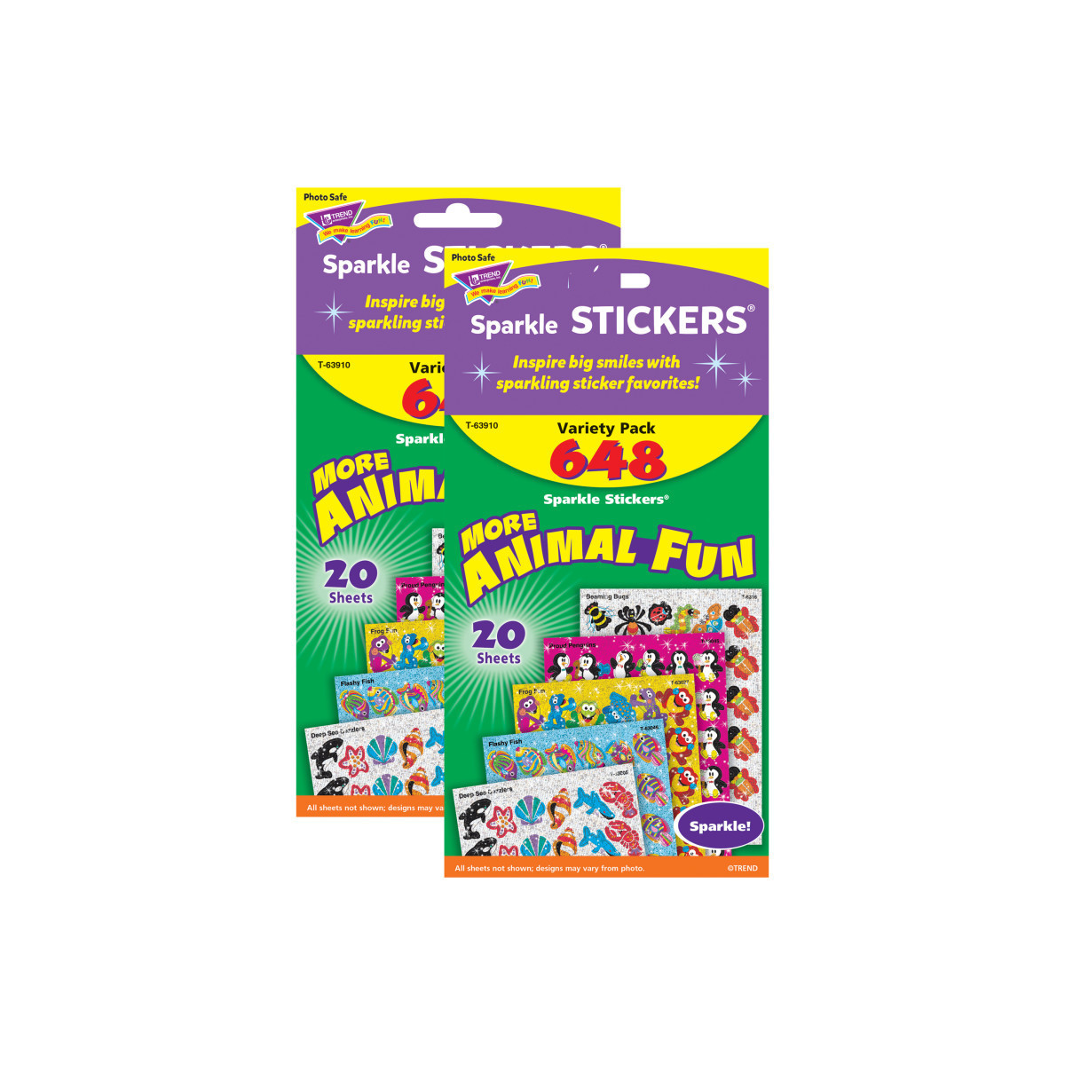 Little sparklers are a big hit with kids! They're just the right size to put on homework and reward good behavior. This variety pack includes Flashy Fish, Proud Penguins, Deep Sea Dazzlers, Beaming Bugs, Frog Fun, and Baby Ducks. Stickers are acid free, nontoxic, and safe for use on photos. 36 sticker designs, 648 stickers per pack. Sold as 2 packs for a total of 1296 stickers.