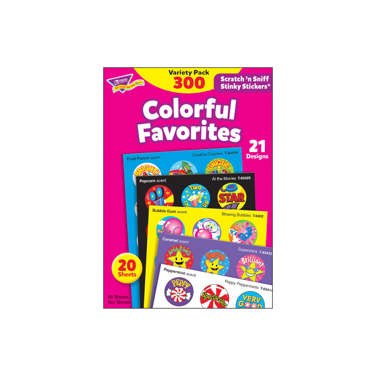 Scratch 'em and sniff 'em for a burst of fragrance! Great as rewards, incentives, and collectibles. Acid-free, non-toxic, and safe for use on photos. 20 sheets, 300 stickers. Actual sticker sheets may vary from photo.