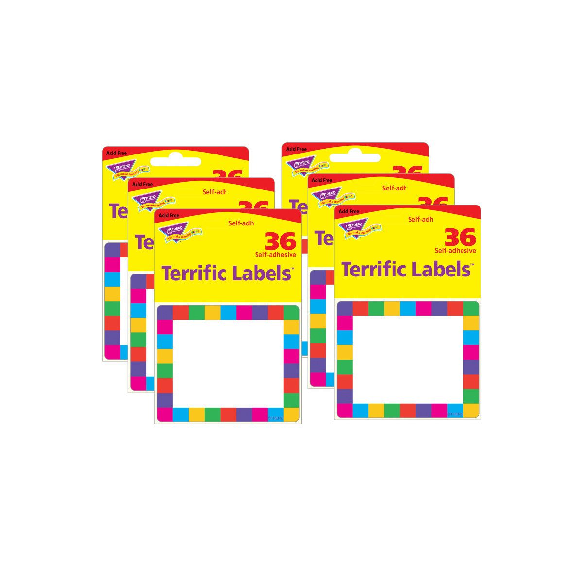 Bright and welcoming labels are acid free and designed for no-smear writing with markers or pens. Perfect for name tags, labels stay put and won't leave residue on clothes! Also great for cubbies, lockers, storage boxes, envelopes, learning centers, and so much more. Self-adhesive. Labels measures 2.5" x 3". Each pack includes 36 labels. Sold as 6 packs for a total of 216 labels.