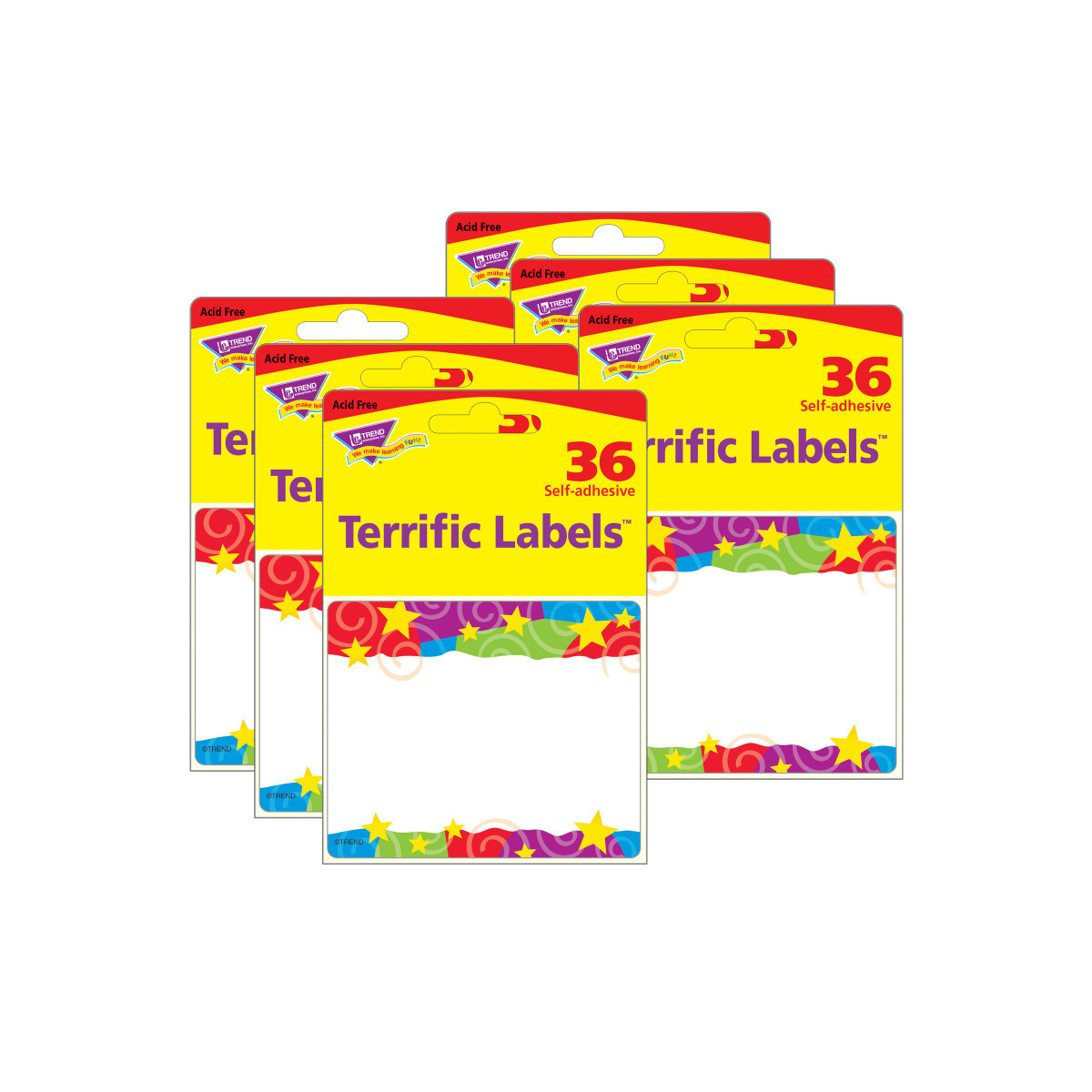Bright and welcoming labels are acid free and designed for no-smear writing with markers or pens. Perfect for name tags, labels stay put and won't leave residue on clothes! Also great for cubbies, lockers, storage boxes, envelopes, learning centers, and so much more. Self-adhesive. 36 per pack, 2.5" x 3". Sold as 6 packs for a total of 216 labels.
