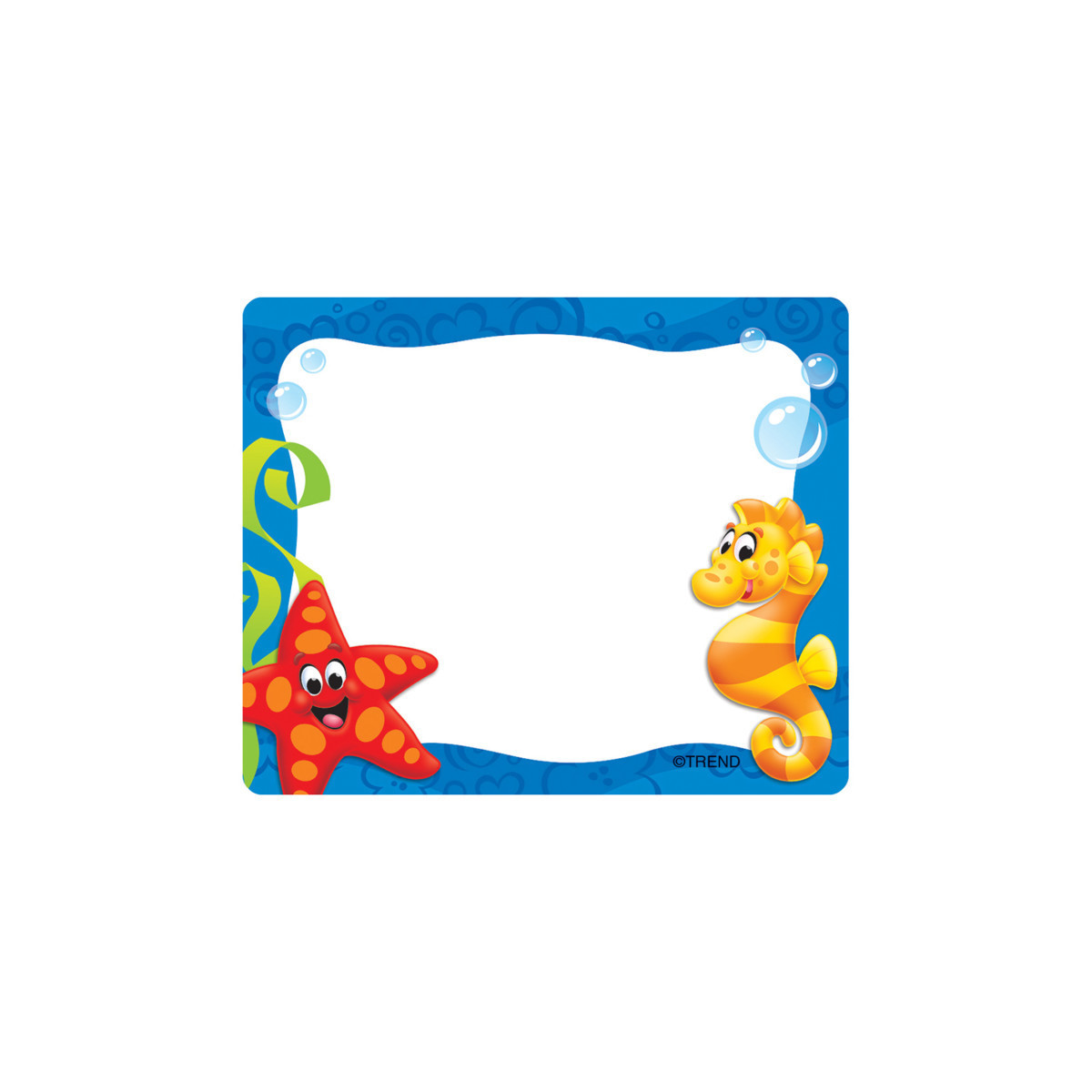 Bright and welcoming labels have a smooth finish for easy, no-smear writing with markers or pens. Perfect for name tags because labels stay put and won't leave residue on clothes. Also great for cubbies, lockers, storage boxes, envelopes, and learning centers. 2 1/2'' x 3''; self-adhesive. 36 per pack. Coordinates with Sea Buddies Collection.
